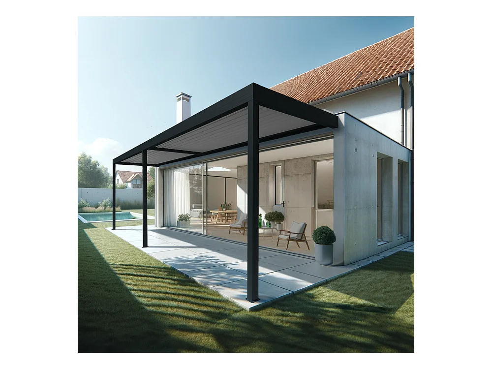 Pergola adossée en aluminium "Windsor" - Gris anthracite - 3 x 4 m