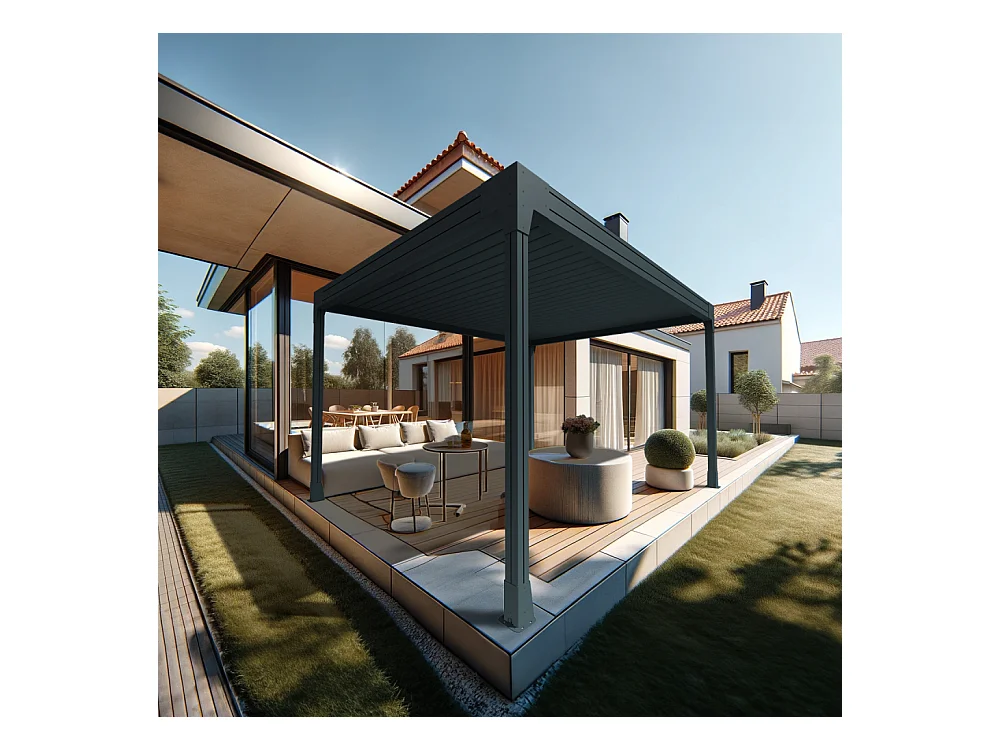 Pergola bioclimatique autoportée BERYL 3,50x4,00 m Vérin à Télécommande - Mixte