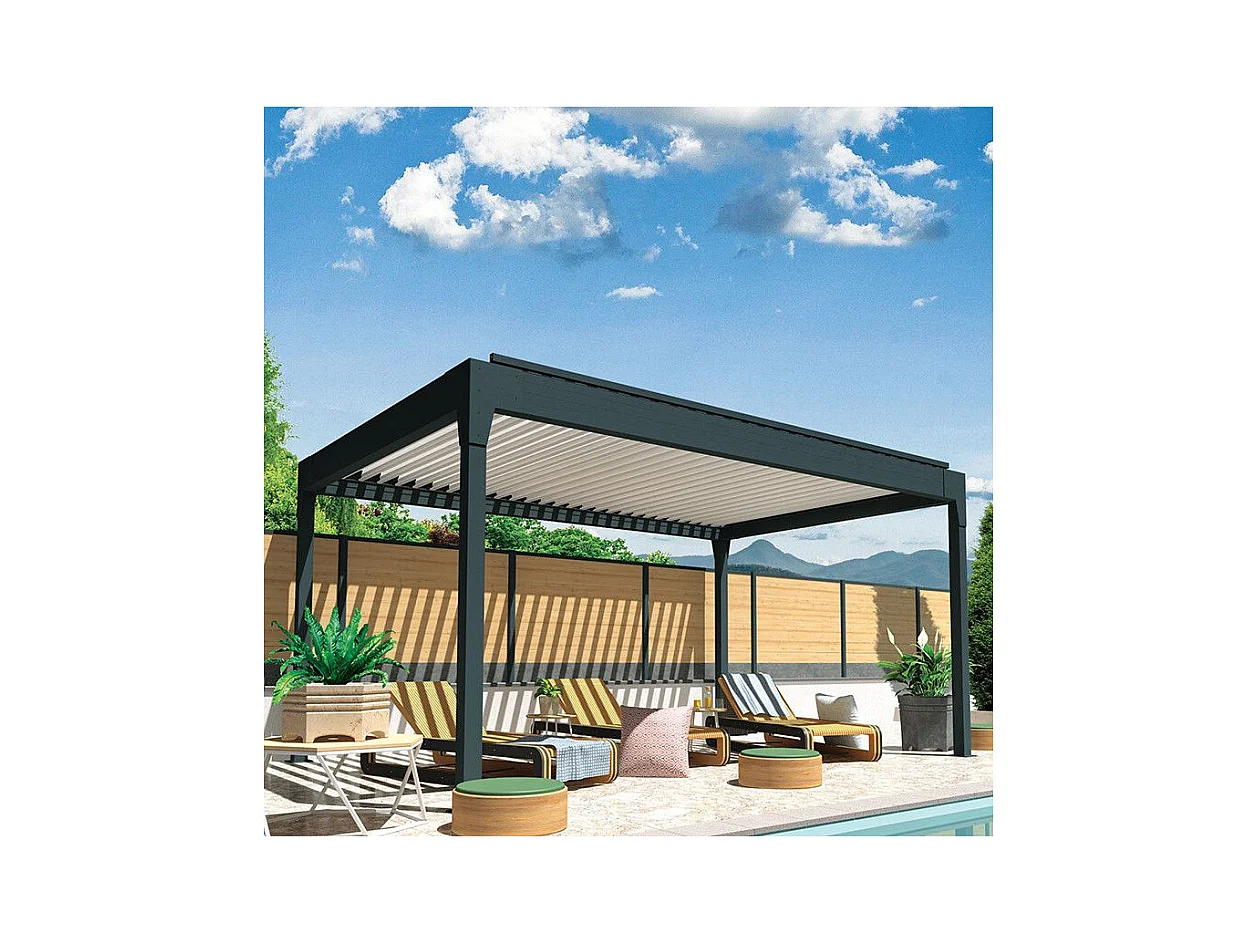 Pergola Bioclimatique gris anthracite – Triomphe – 300x400cm. aluminium. à lames orientables + store 400cm