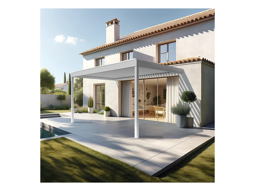 Pergola bioclimatique adossée motorisée en aluminium 3x4 m blanc