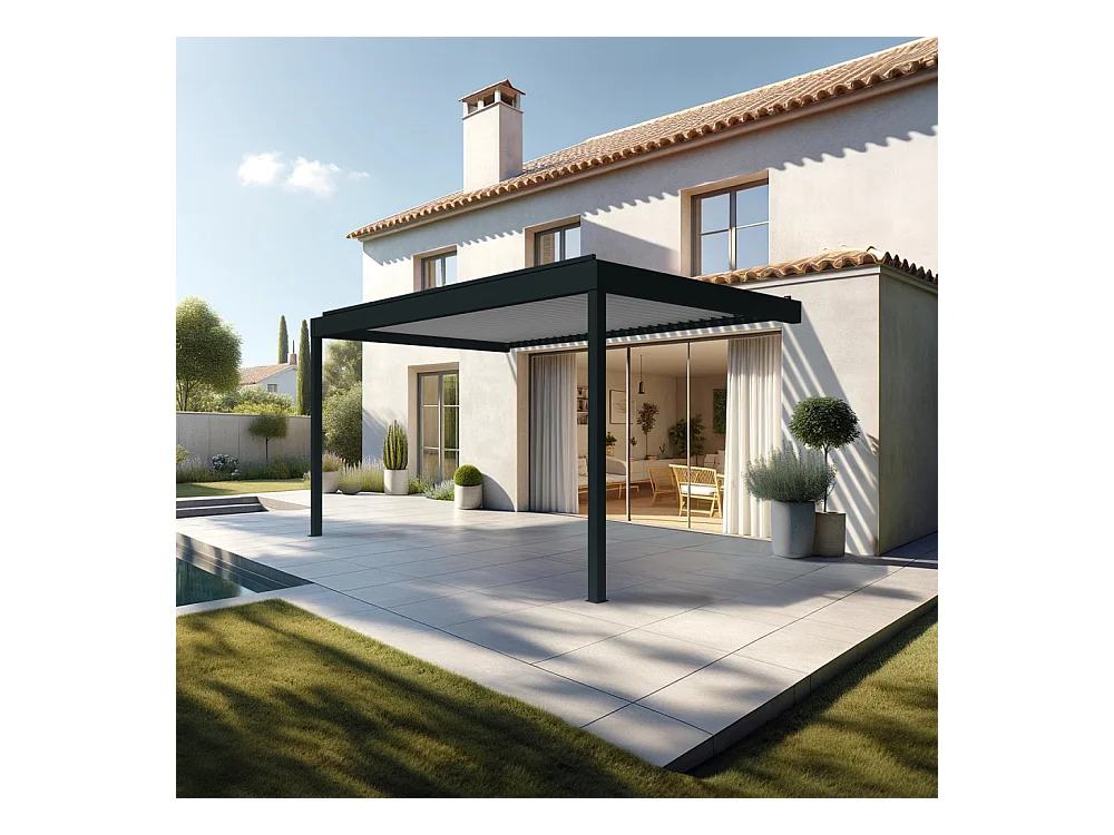 Pergola Bioclimatique AVANOA 4,00x4,088 M Vérin à Télécommande (Gris anthracite)