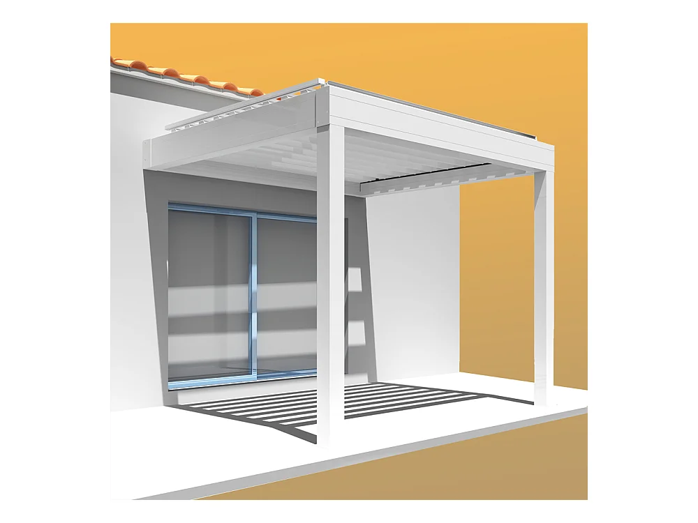 Pergola bioclimatique adossée motorisée en aluminium 3x4 m blanc