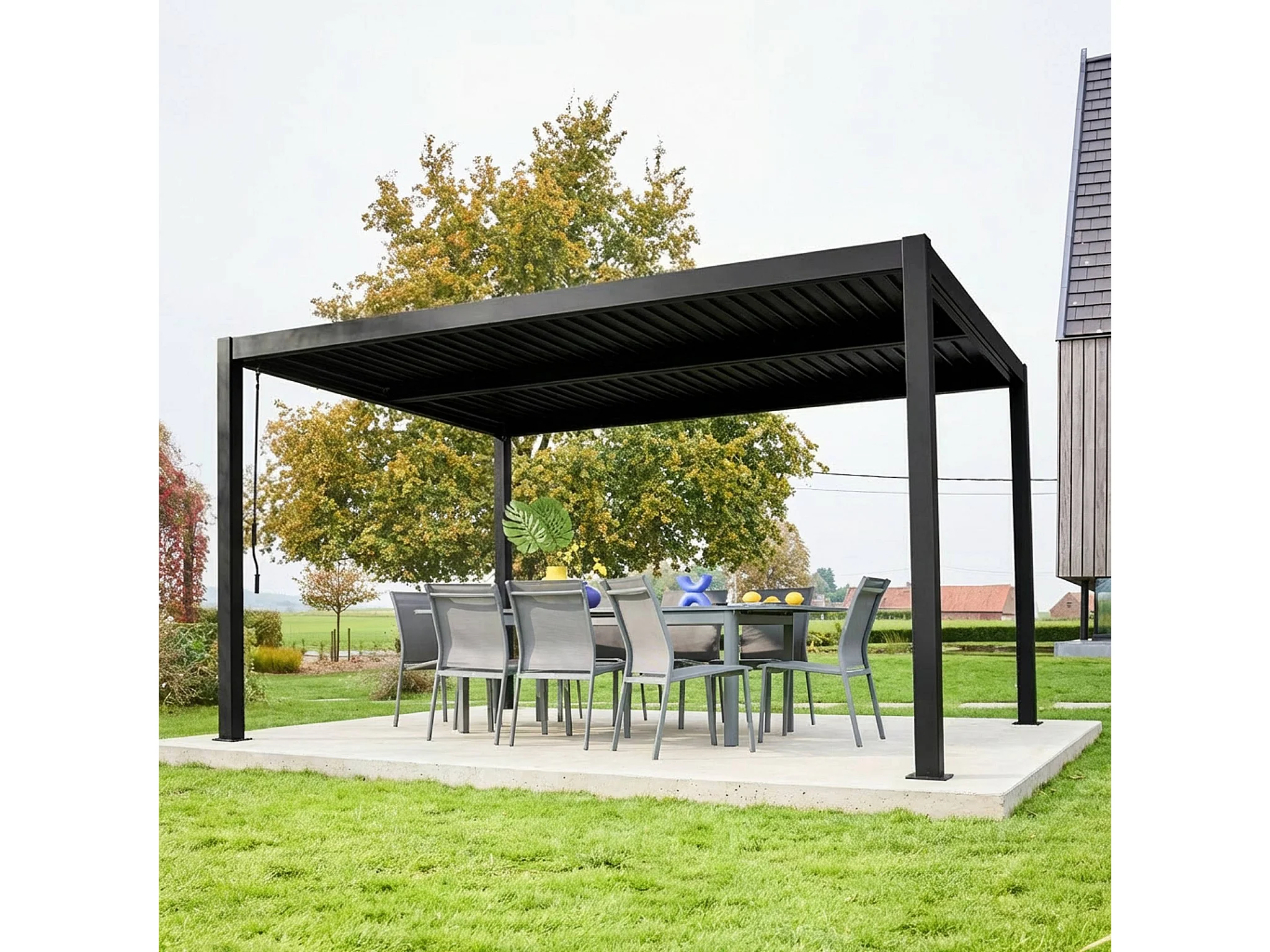 Pergola bioclimatique noir. aluminium et acier. 3x4m. lames orientables