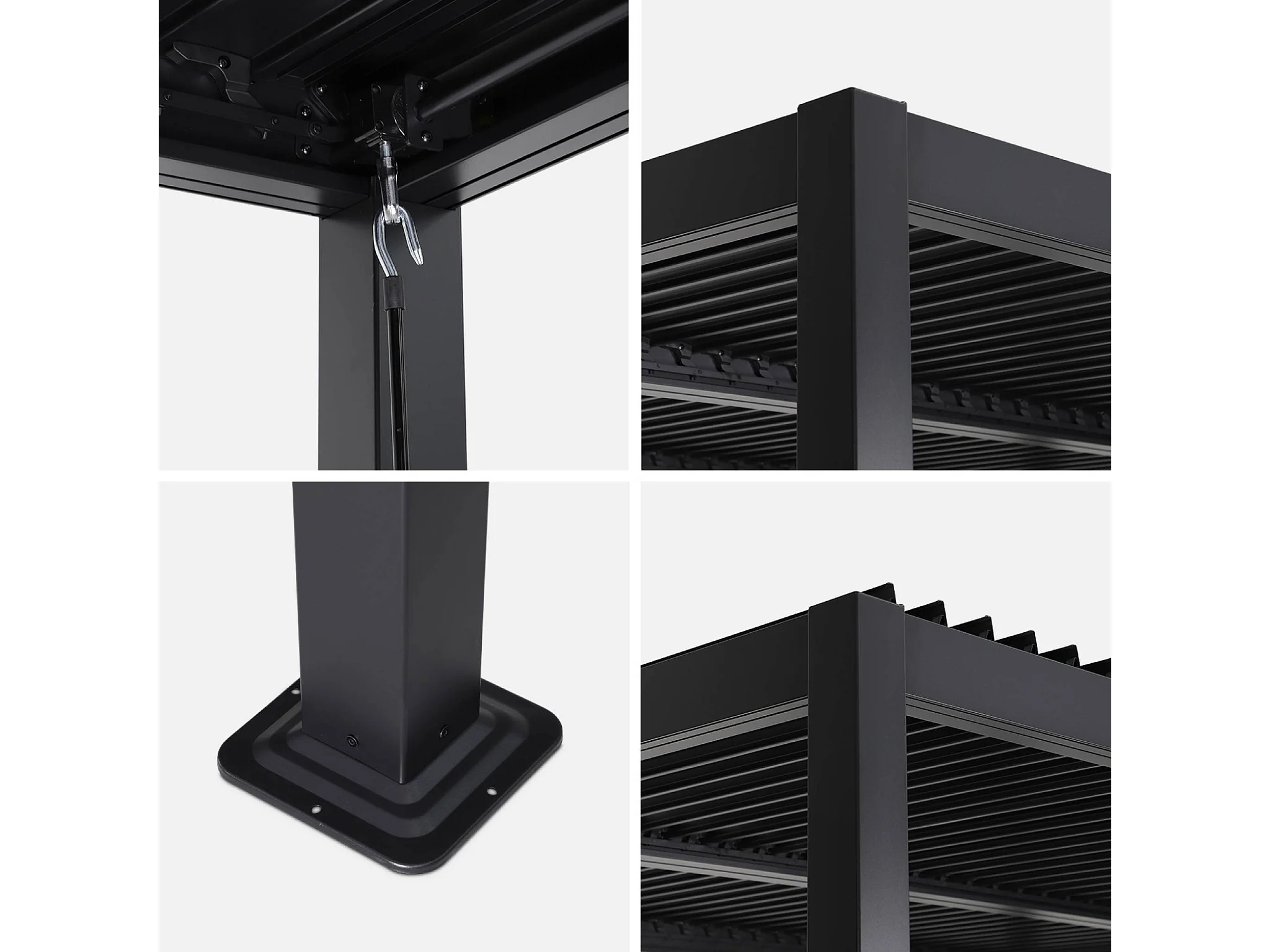 Pergola bioclimatique noire. aluminium et acier. 3x3m. lames orientables