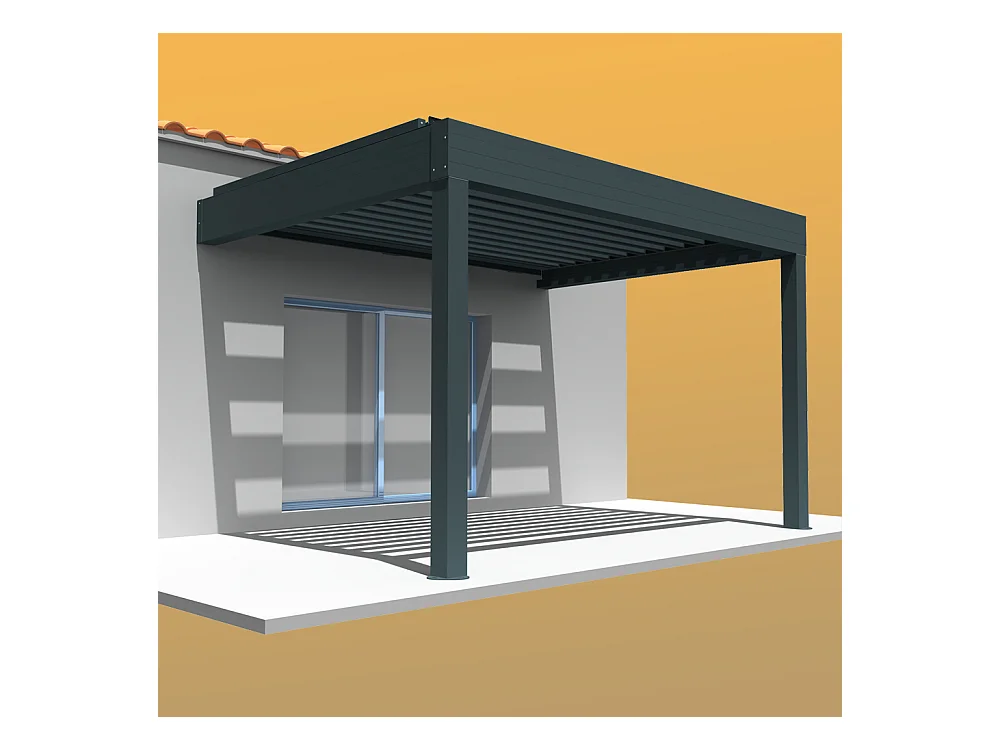 Pergola bioclimatique HELY perpendiculaire 4,09x4,50m Vérin à télécommande (Gris anthracite)