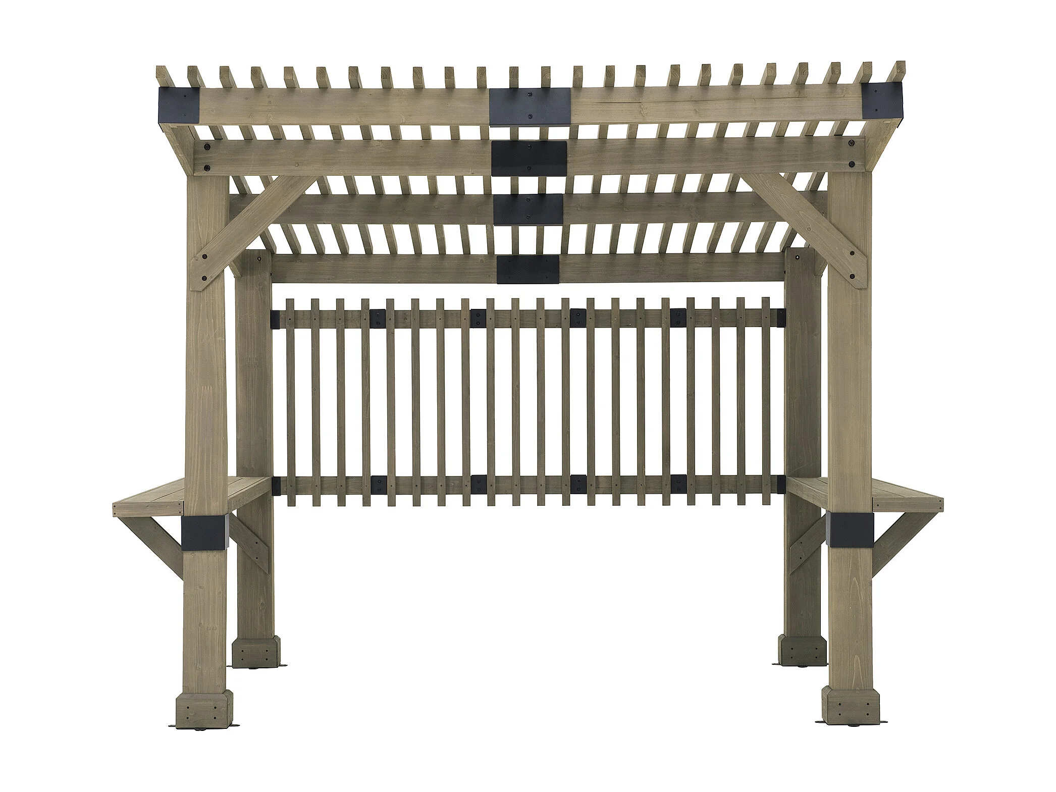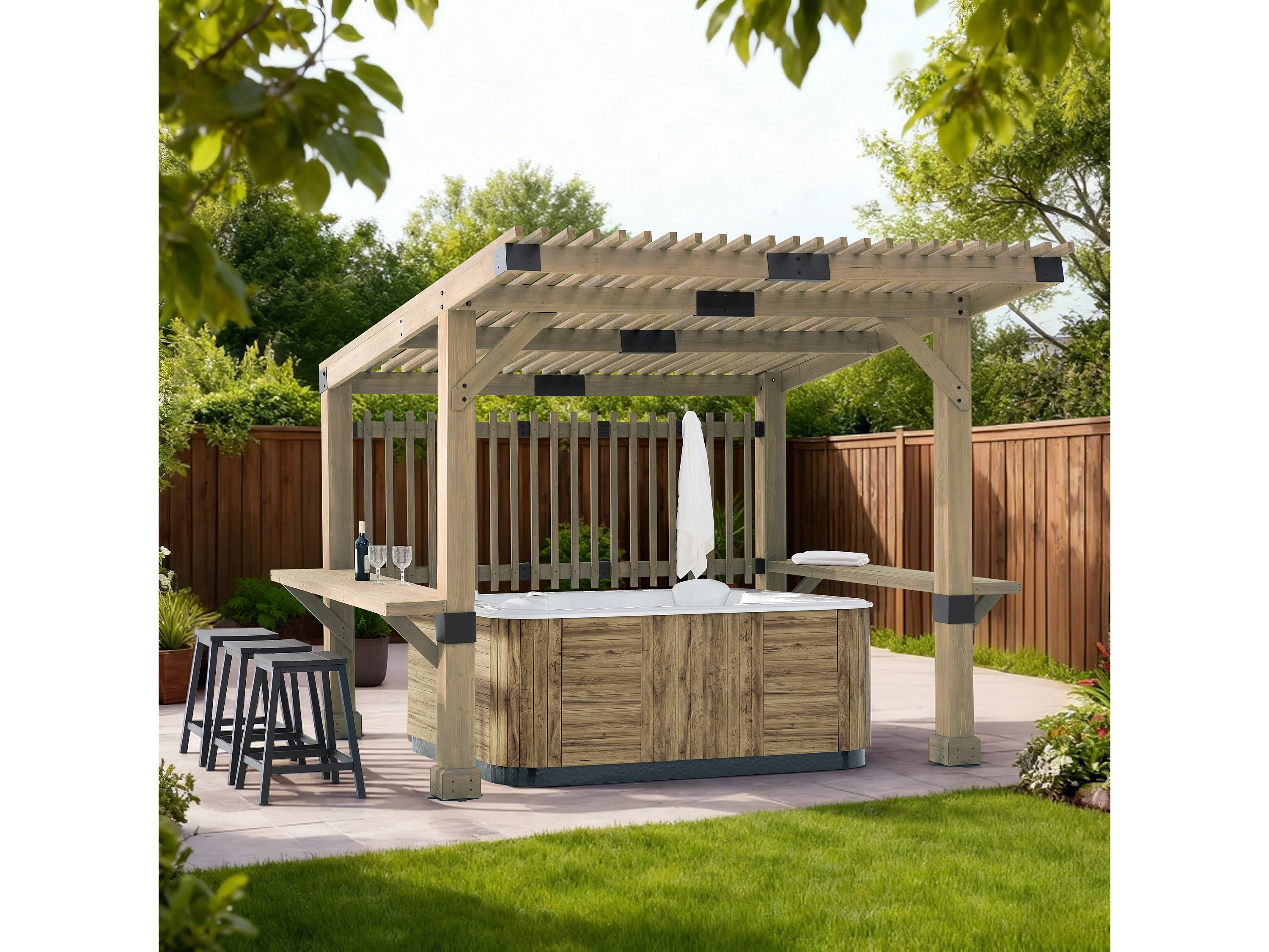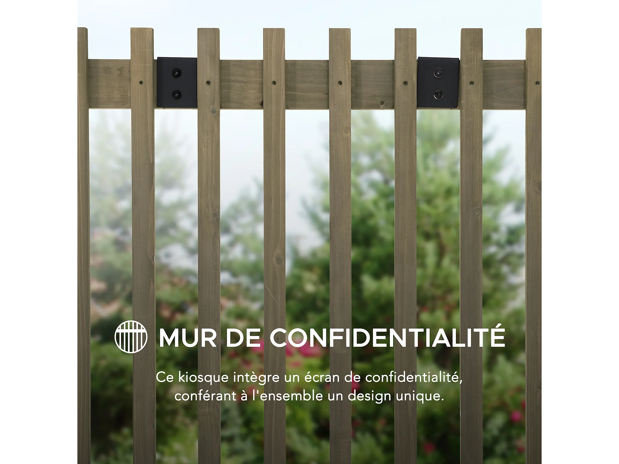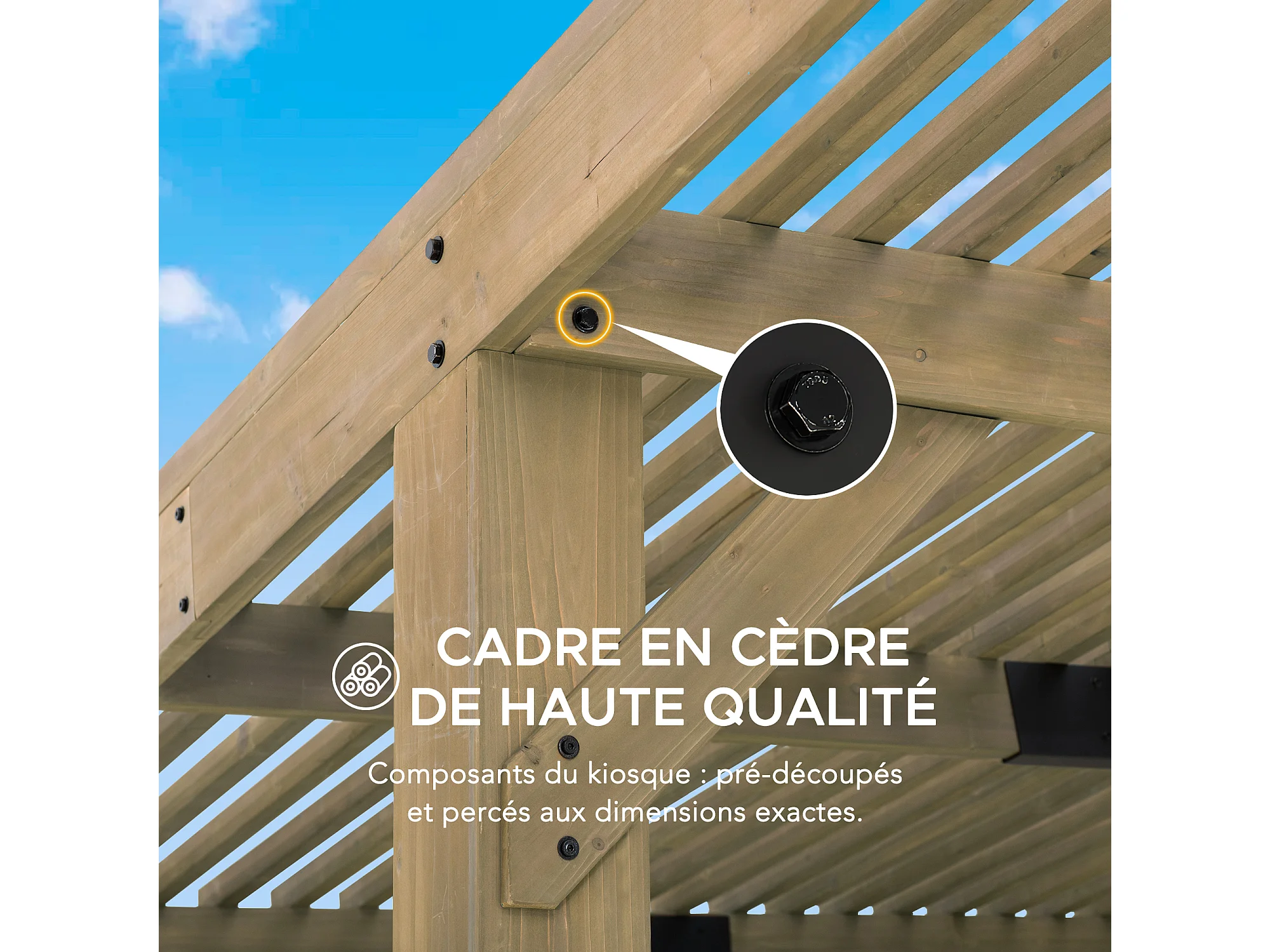 Pergola d'extérieur en cèdre avec brise-vue et étagères KRONE 305 cm x 331 cm