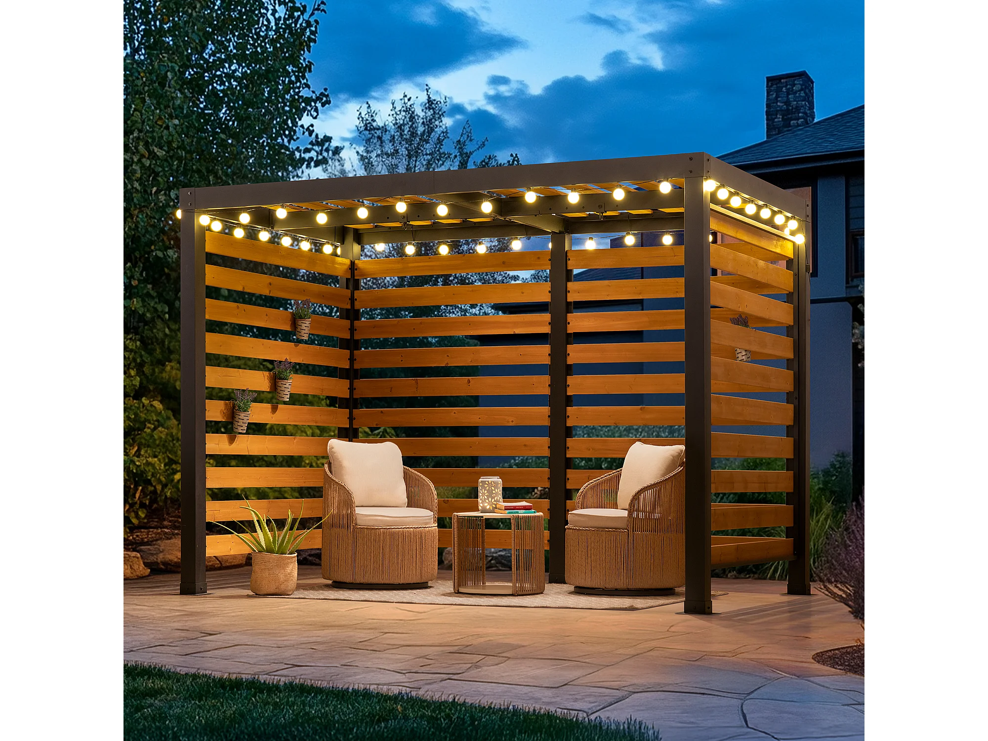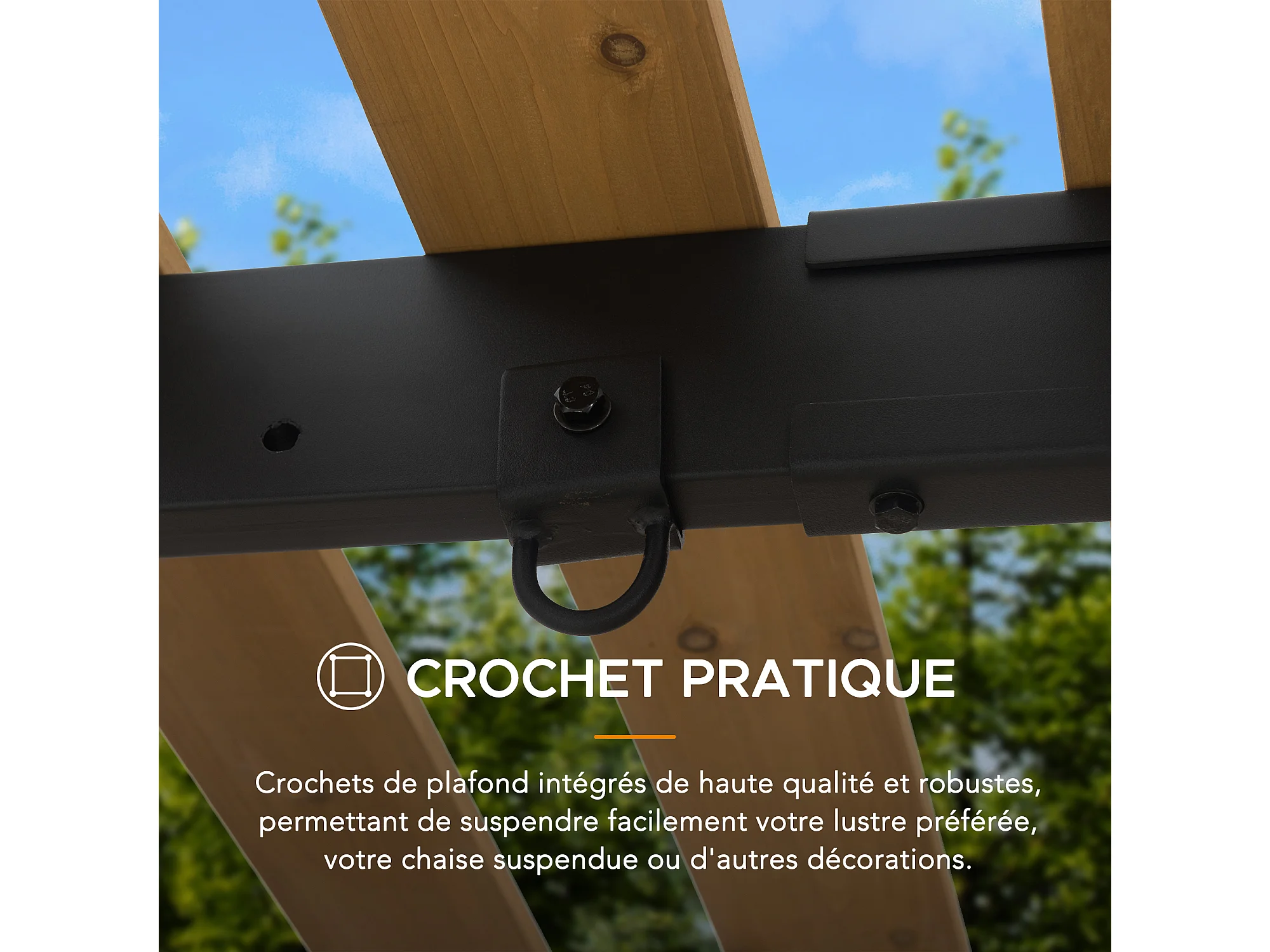Pergola d'extérieur moderne en acier et bois pour jardin MARAO 191 cm x 313 cm