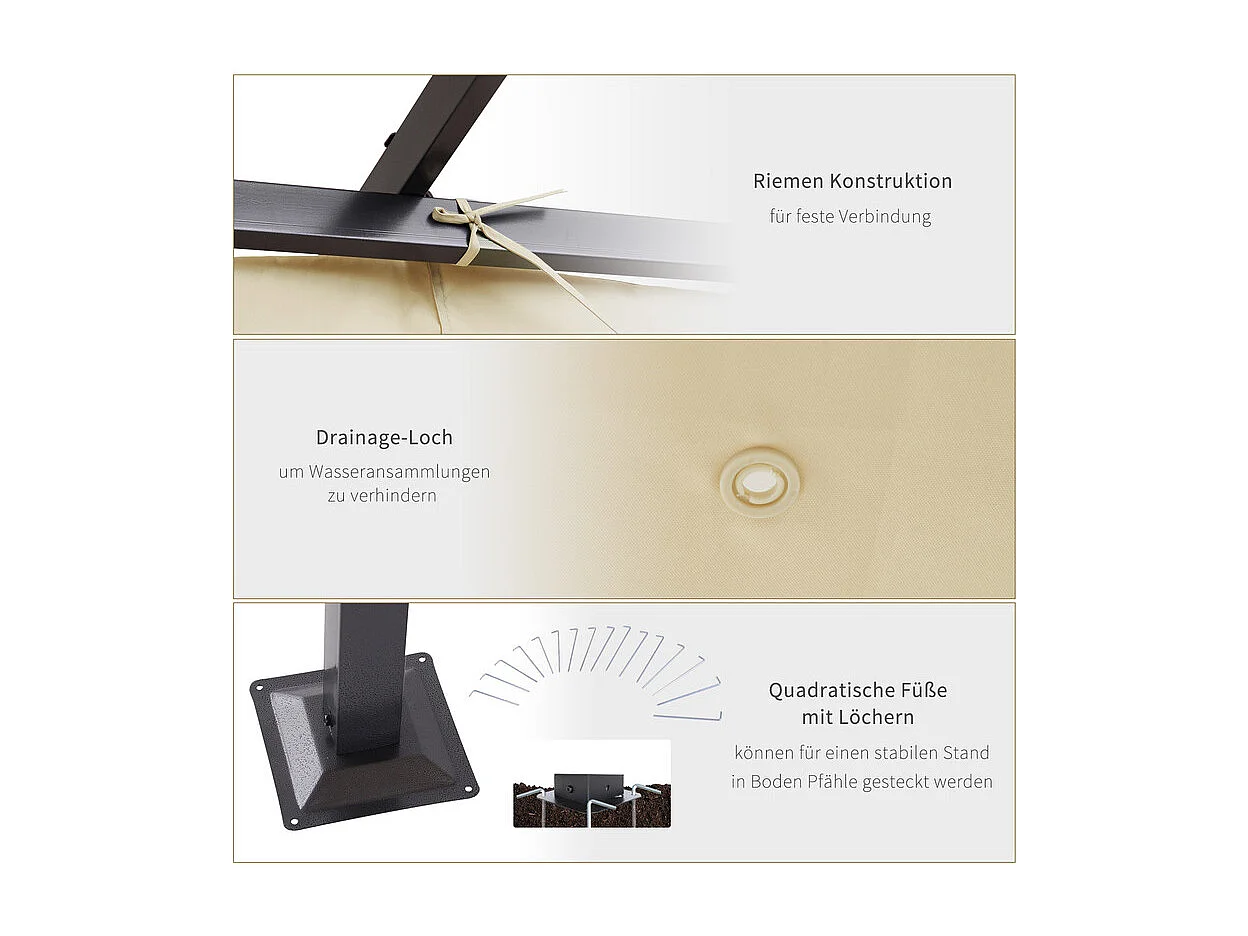 Pergola en Acier inoxydable 3 x 3 x 2.3 m, avec toit ouvrant, toile coulissante rétractable, Beige
