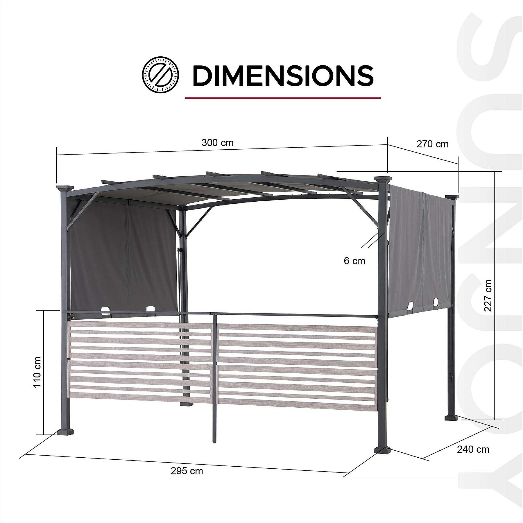 Pergola en métal avec toit à baldaquin réglable et étagère de bar TITOV 270 cm x 300 cm