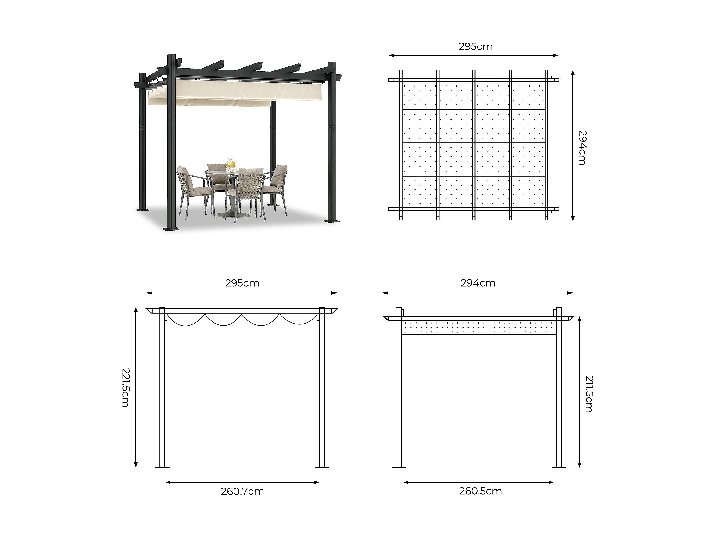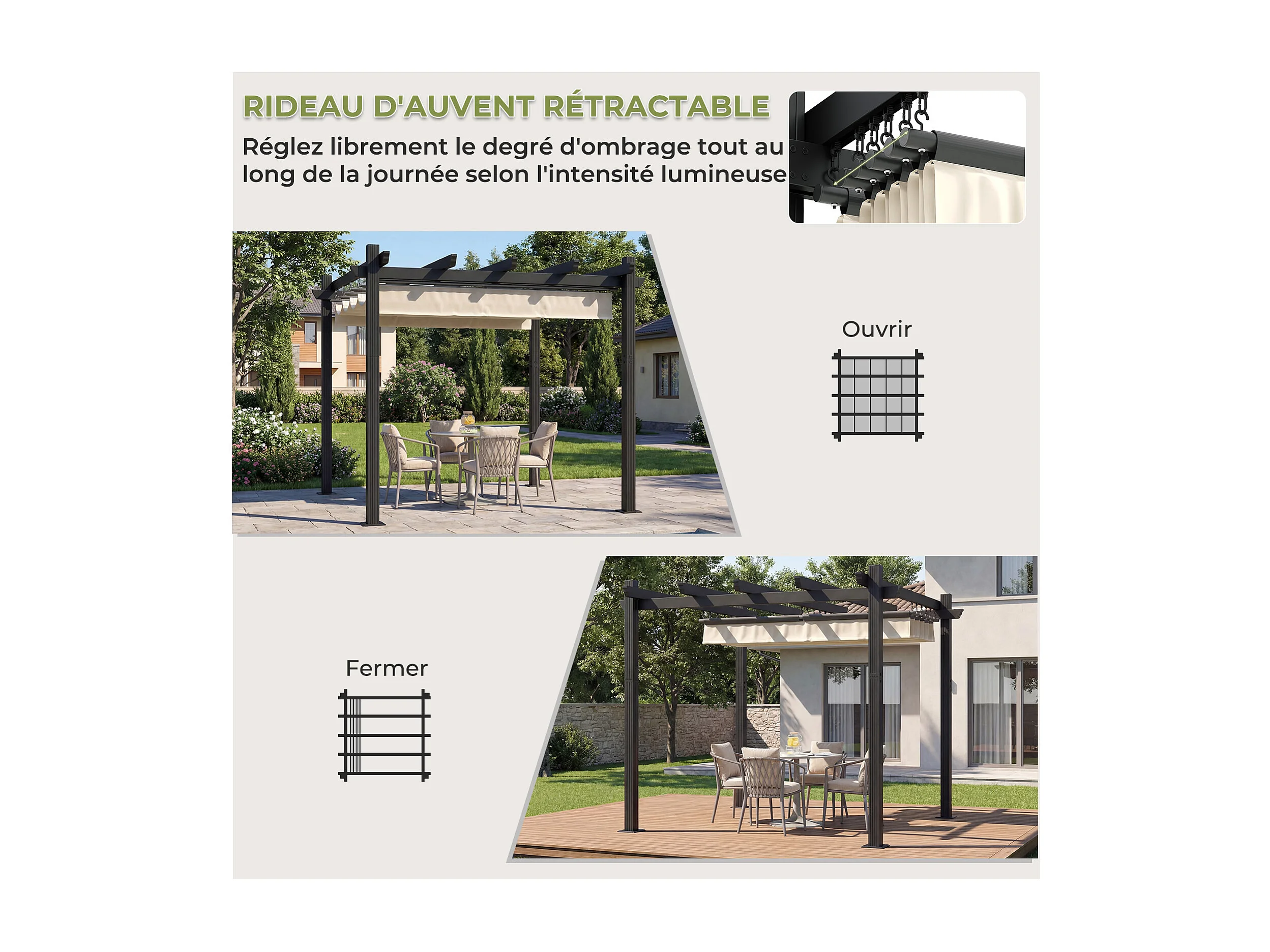 Pergola Jardin 3x3m avec Toit Ouvrant Réglable à Fermeture Magnétique | Structure Aluminium Stable avec Fixations Vis d'Expansion + Tiges de Sol, Beige