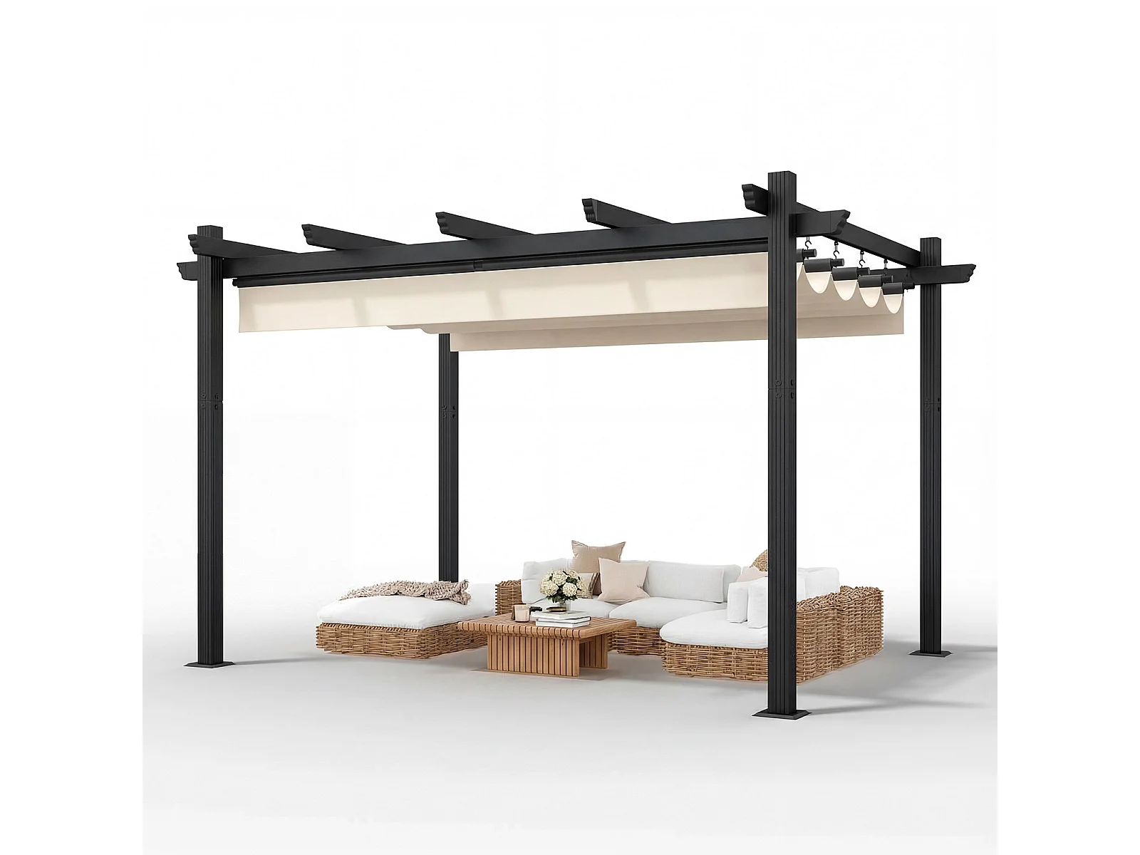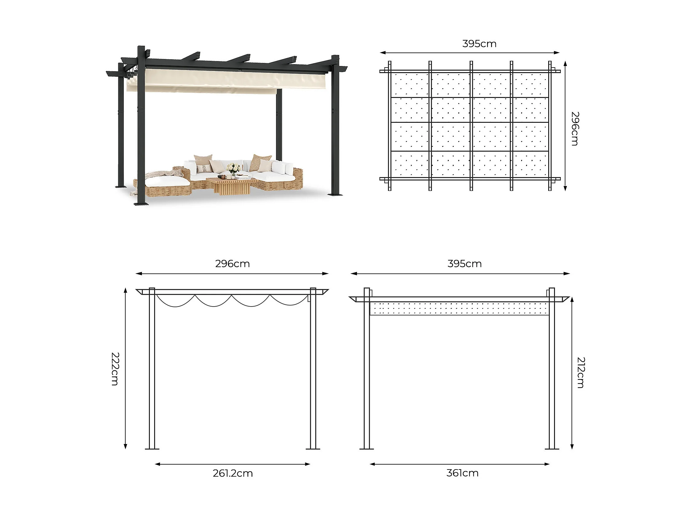 Pergola Jardin 3x4m avec Toit Ouvrant Réglable à Fermeture Magnétique | Structure Aluminium Stable avec Fixations Vis d'Expansion + Tiges de Sol, Beige