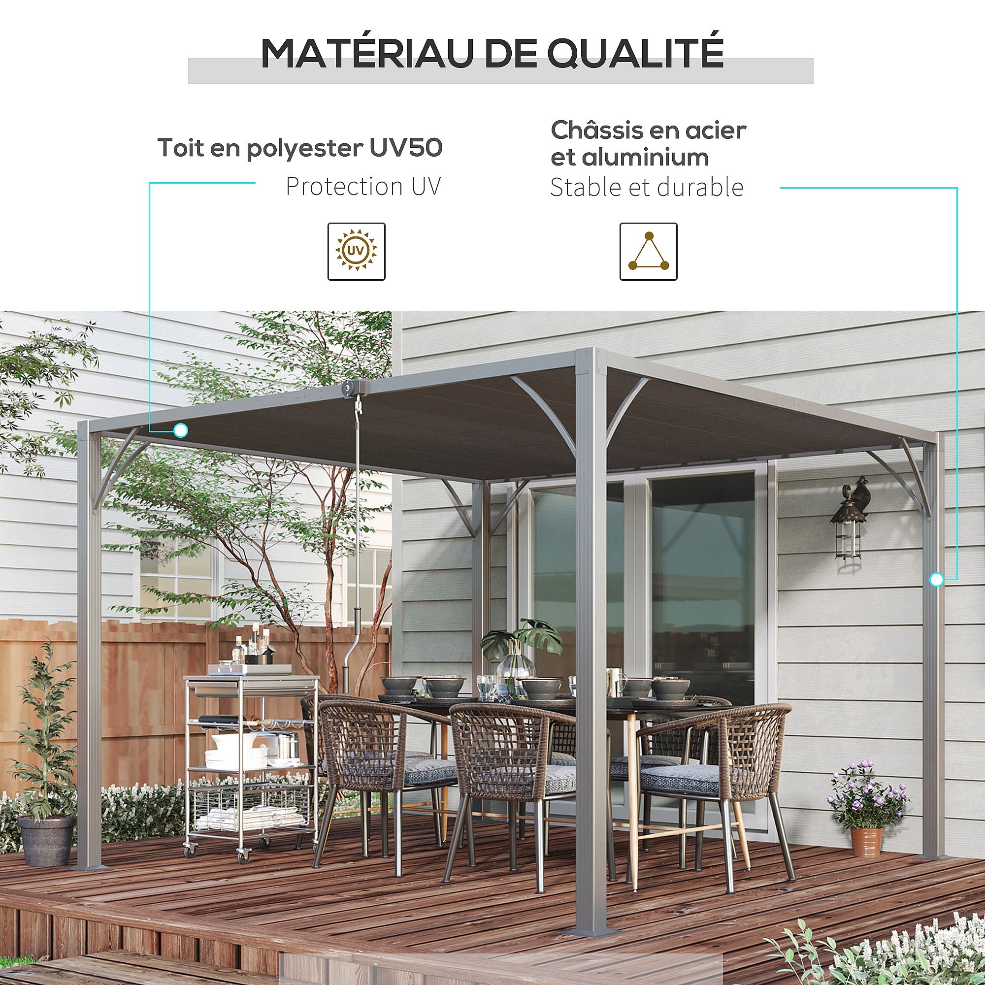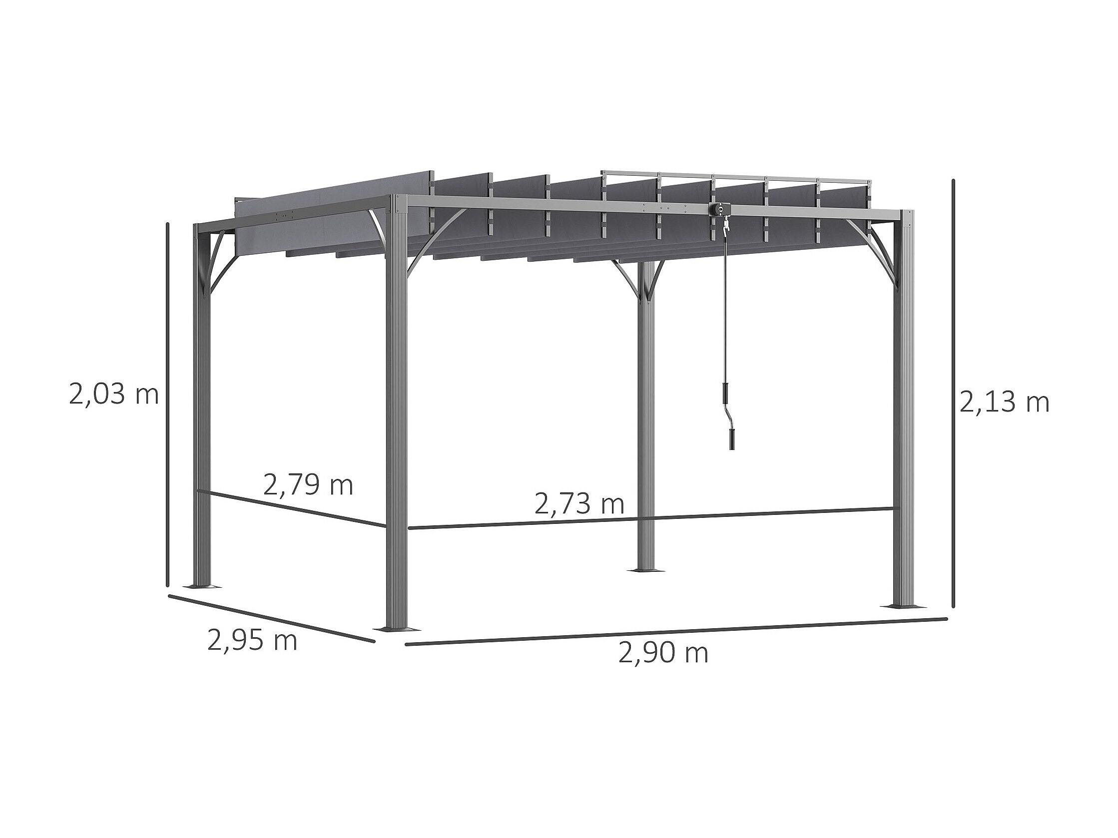 Pergola lames orientables dim. 2,9L x 2,95l x 2,13H m structure alu. acier époxy polyester gris