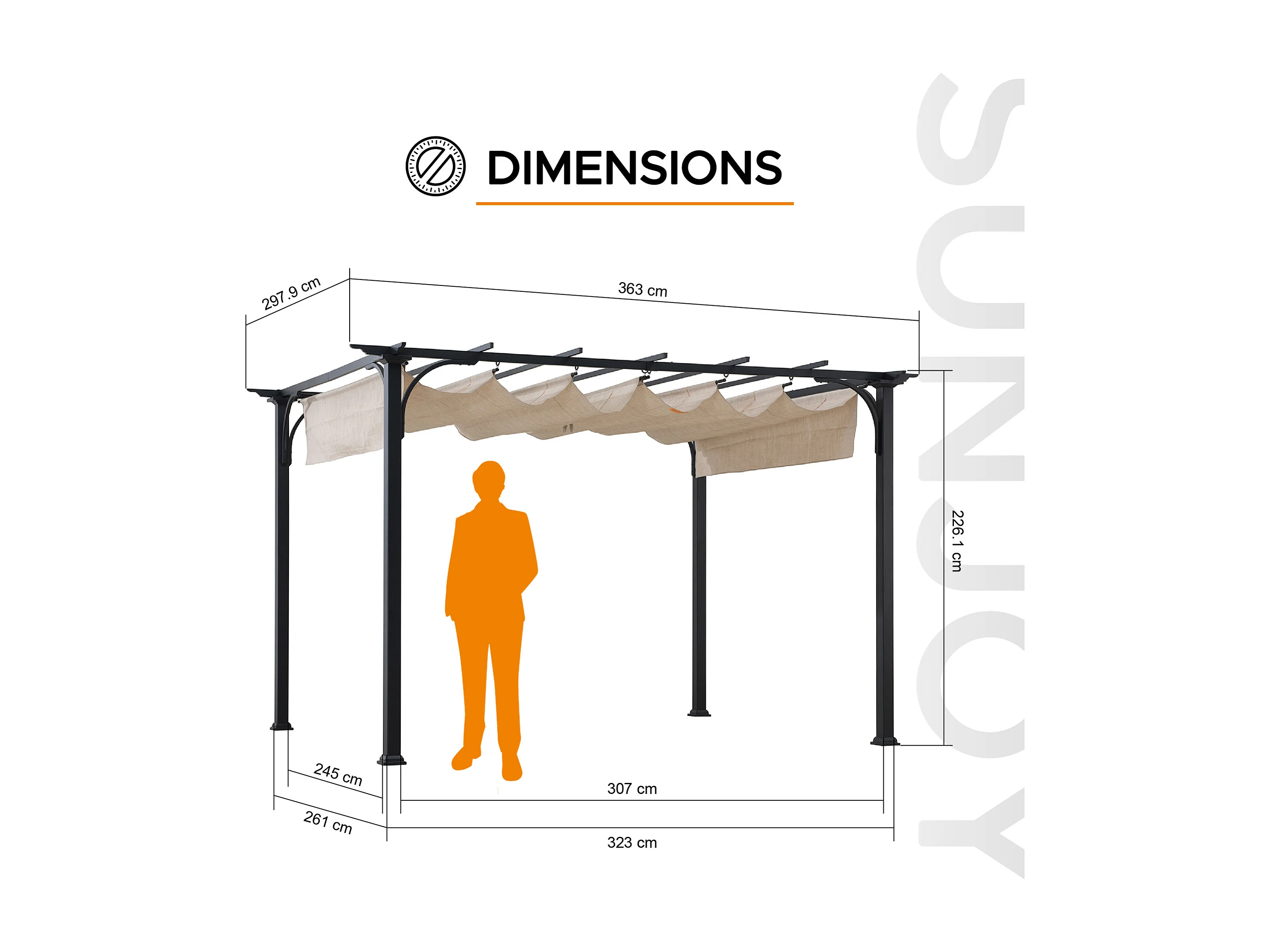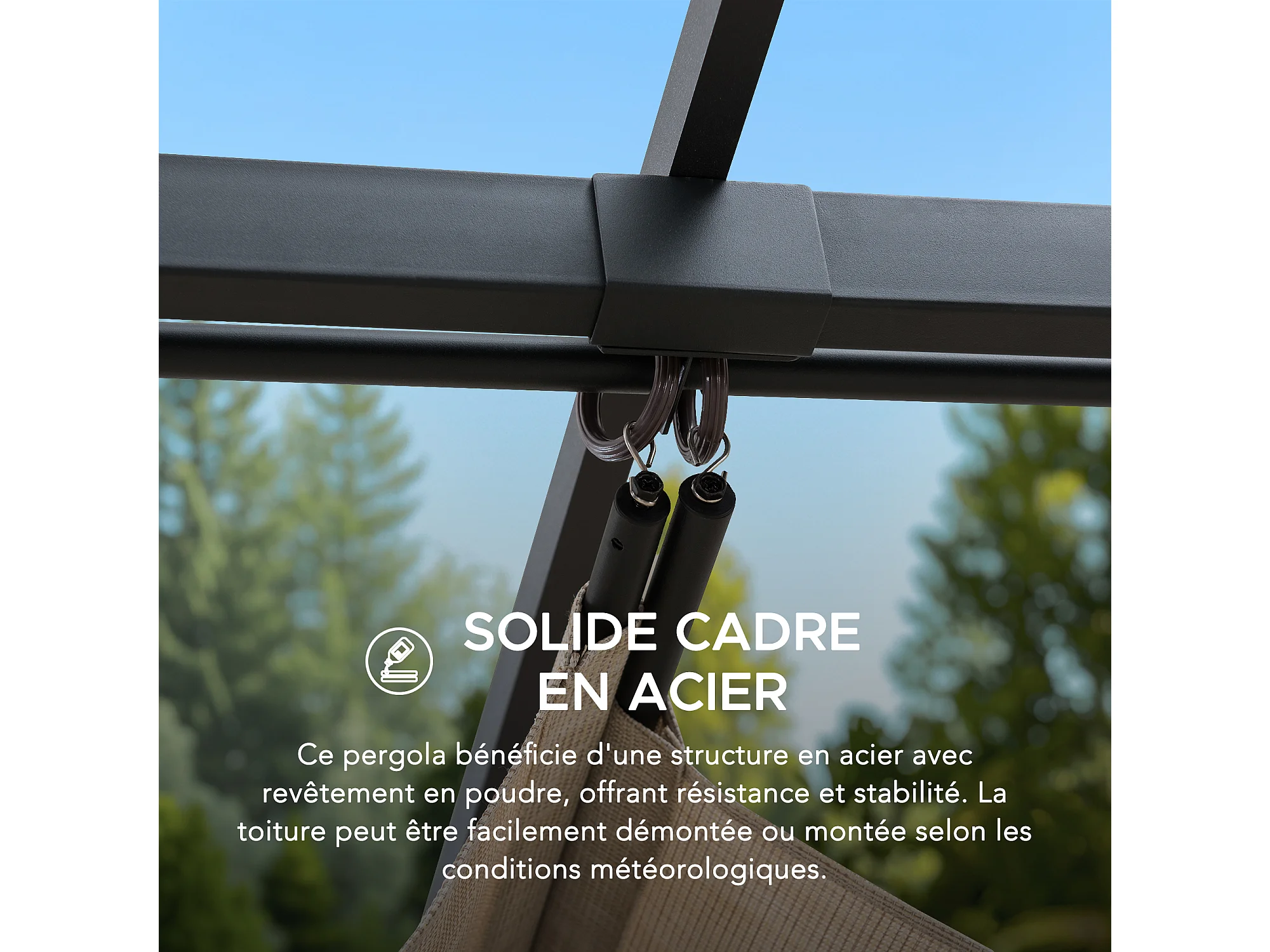 Pergola rétractable en acier avec toit beige pour jardin GIONA 277 cm x 363 cm