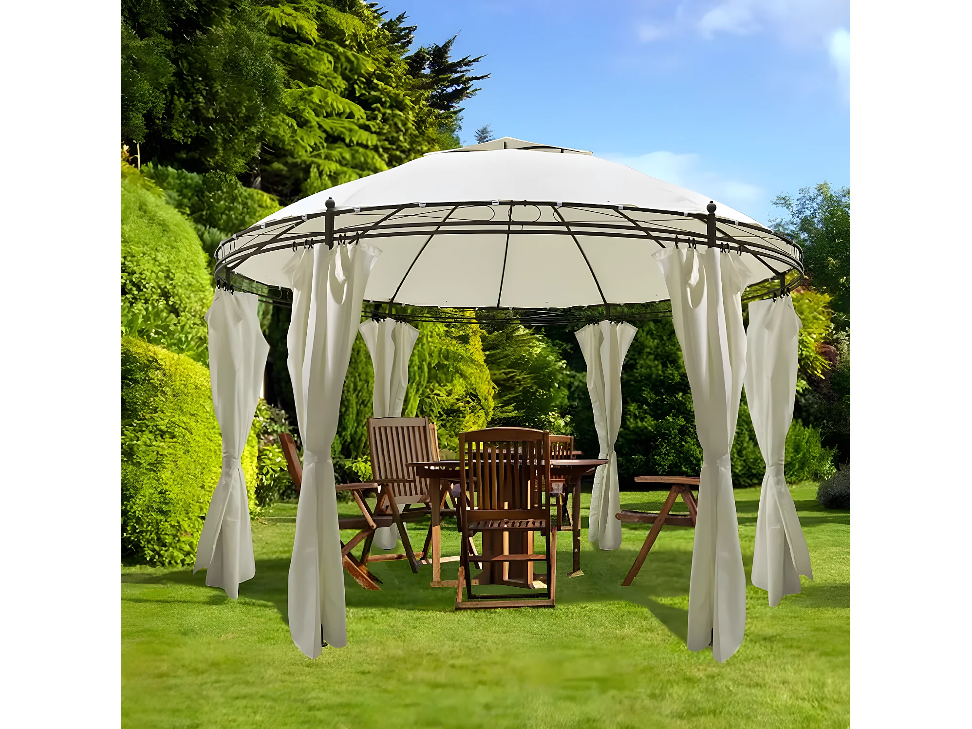 Tonnelle ronde avec rideaux 3,5 x 2,7 m WVGQ3380