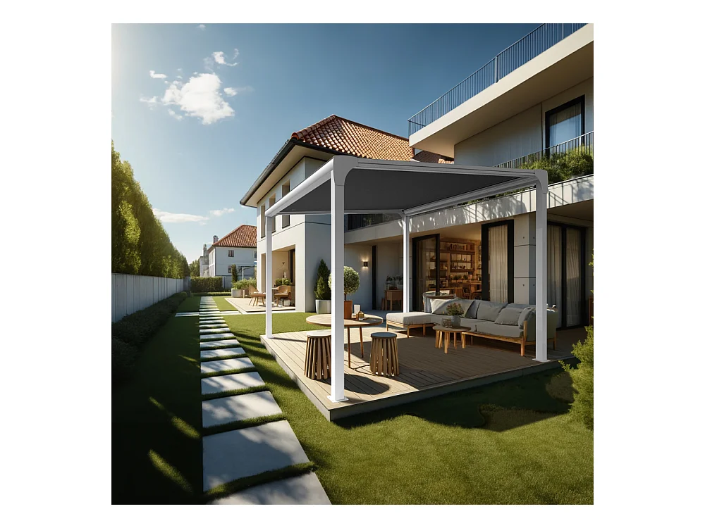 Pergola toile TILA îlot 4,00x3,50m Motorisé à télécommande + manœuvre de secours (Gris Graphite - Blanc)