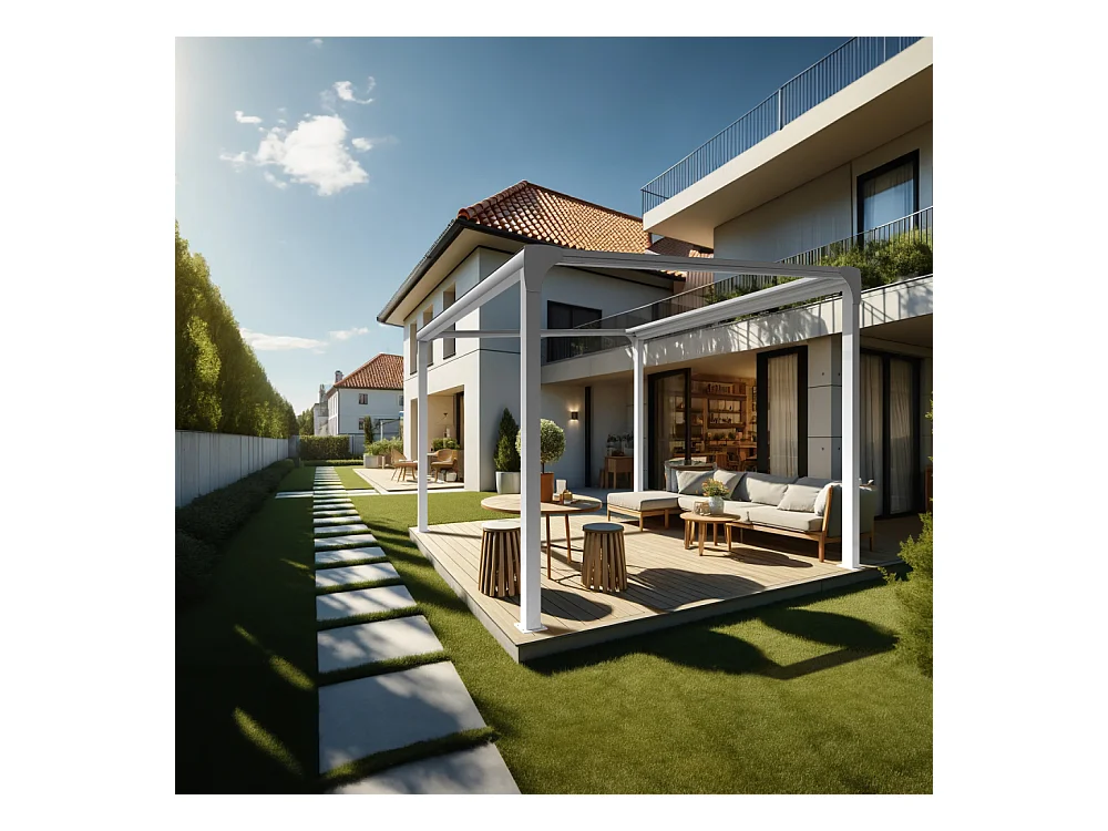 Pergola toile TILA îlot 4,00x4,00m Motorisé à télécommande + manœuvre de secours (Ecru - Blanc)