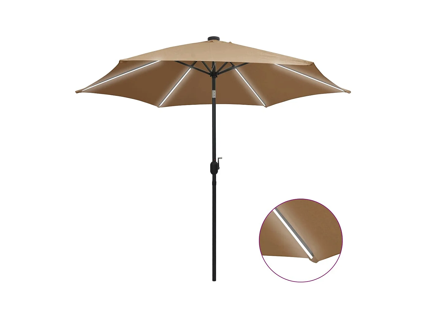 Perind Parasol de jardin avec lumières LED et mât en aluminium taupe