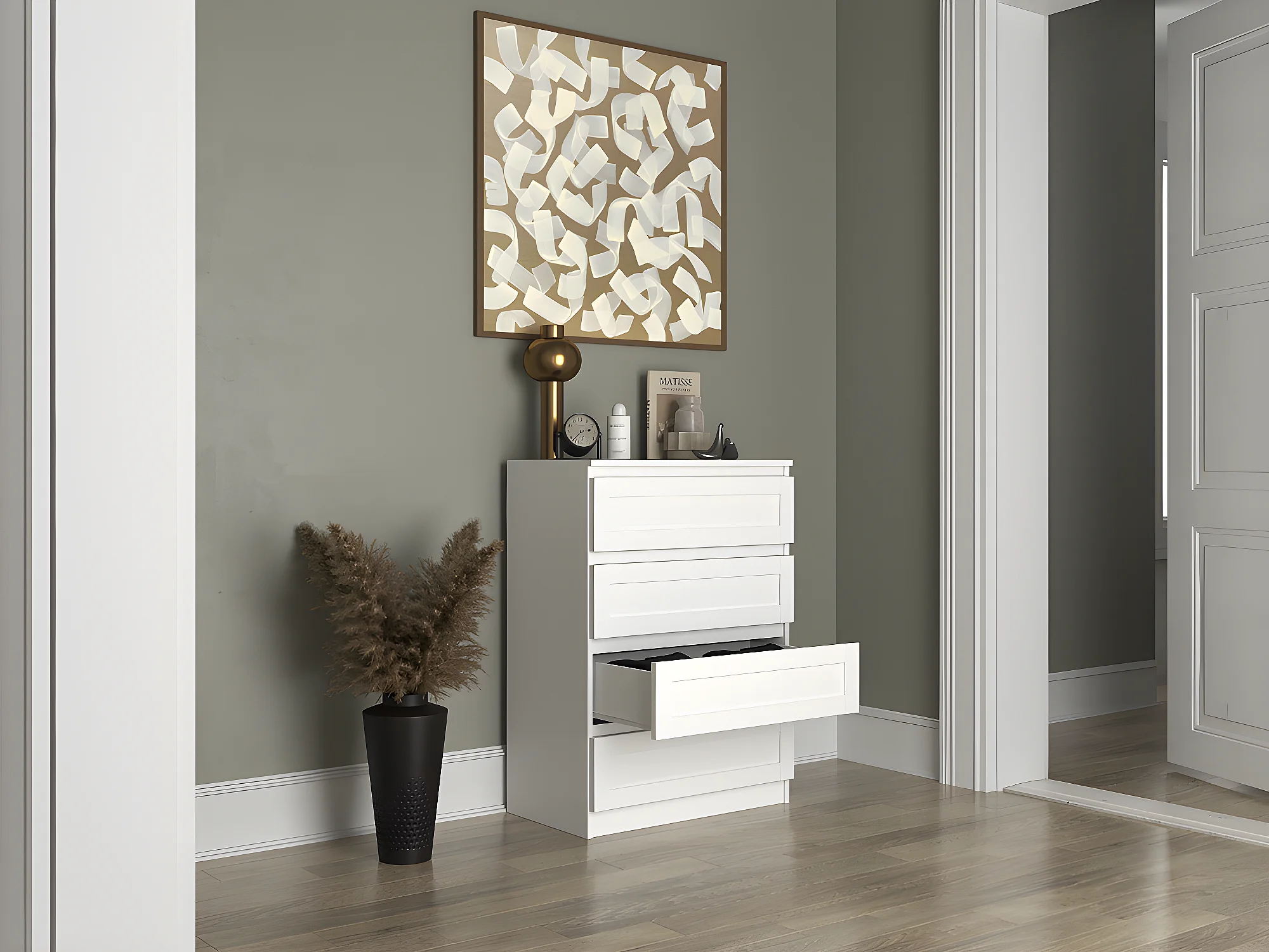 PERRY - Commode de chambre 4 tiroirs - Style classique - 70x40x97 cm - Meuble de rangement
