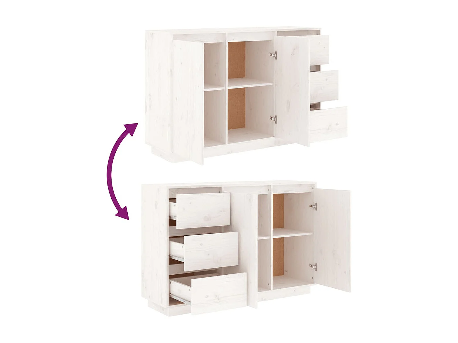 Petit buffet 2 portes 3 tiroirs en bois massif de pin Romane – Style classique et fonctionnel-Couleur Blanc