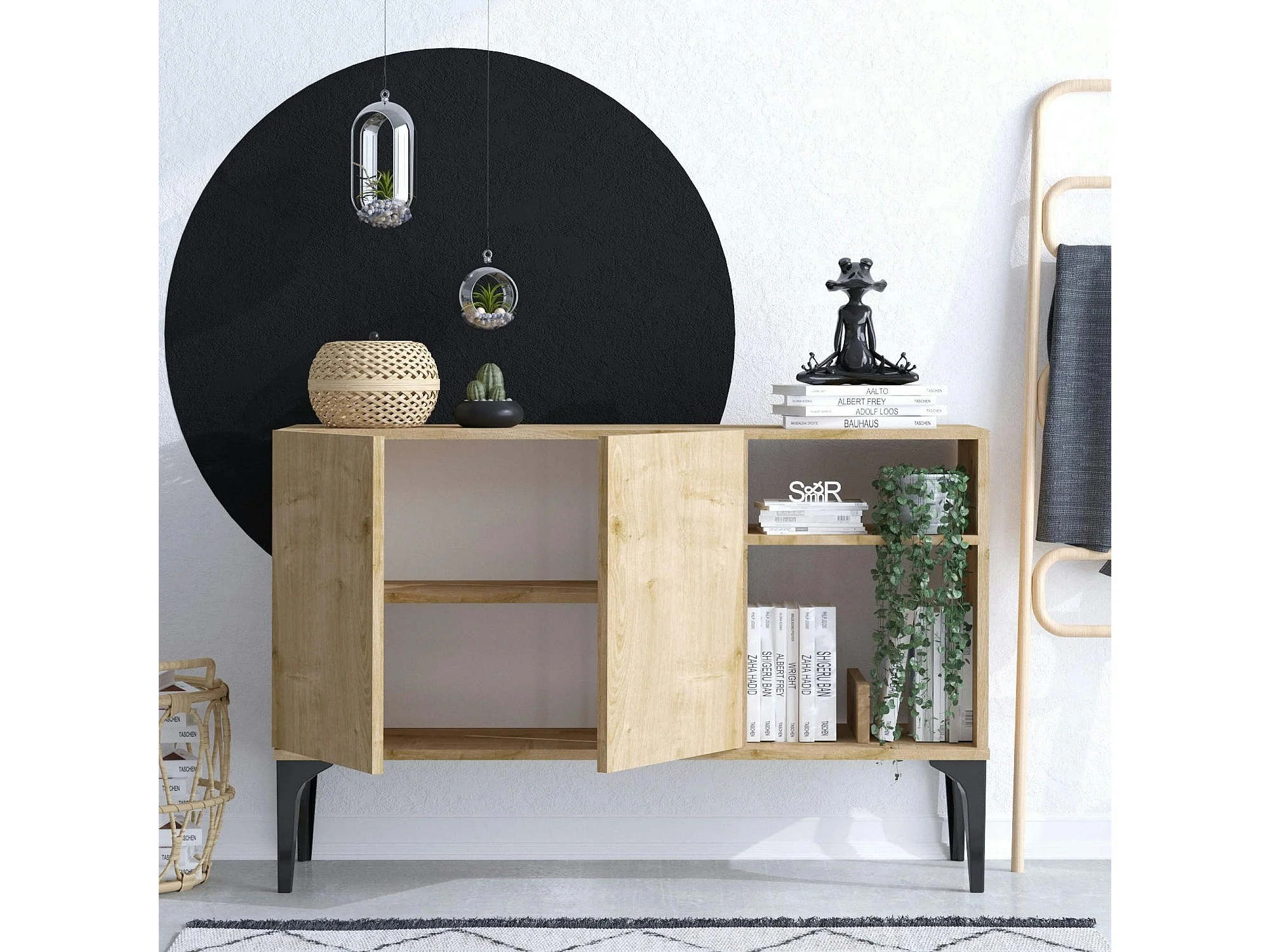Petit buffet 2 portes effet chêne - avec niches JENA