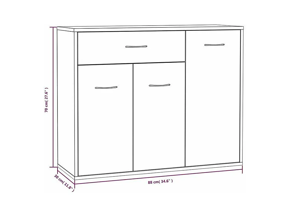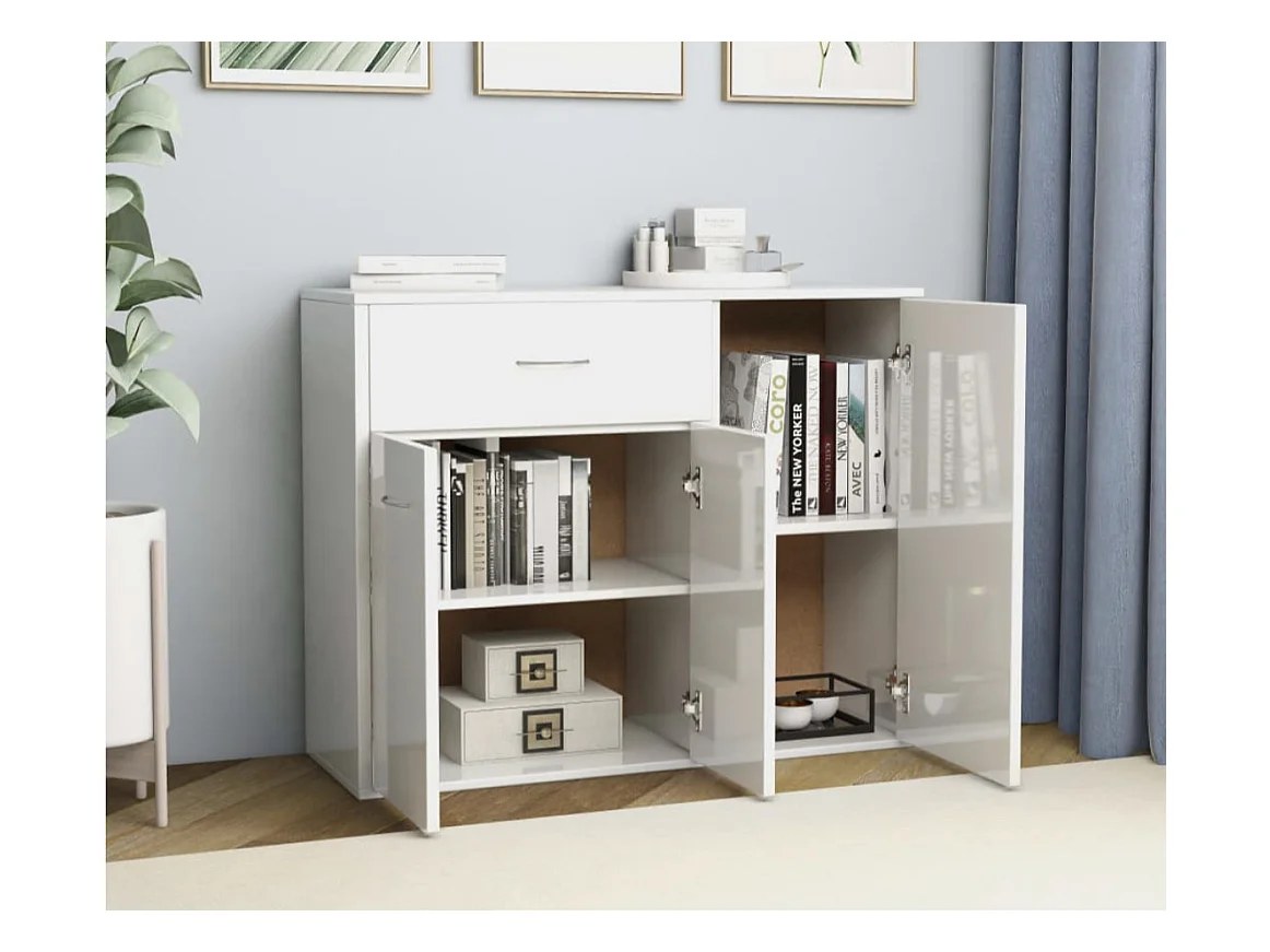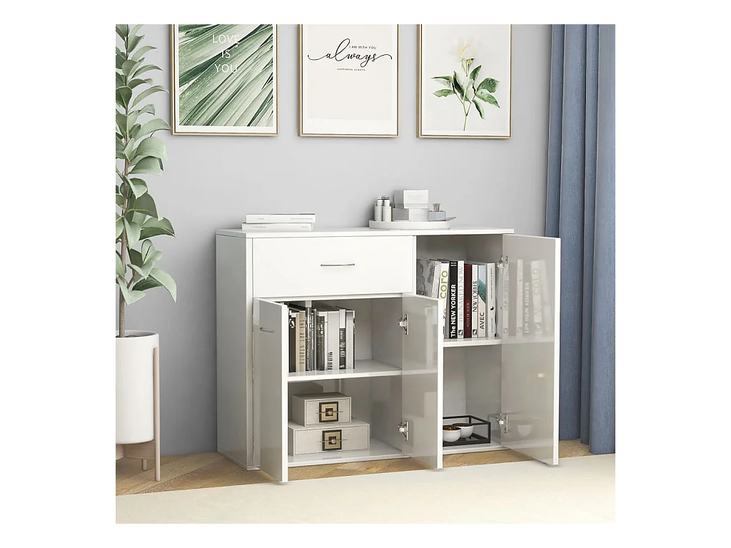 Petit buffet 3 portes et 1 tiroir Homa L 88cm - Gamme intemporelle-Couleur Blanc
