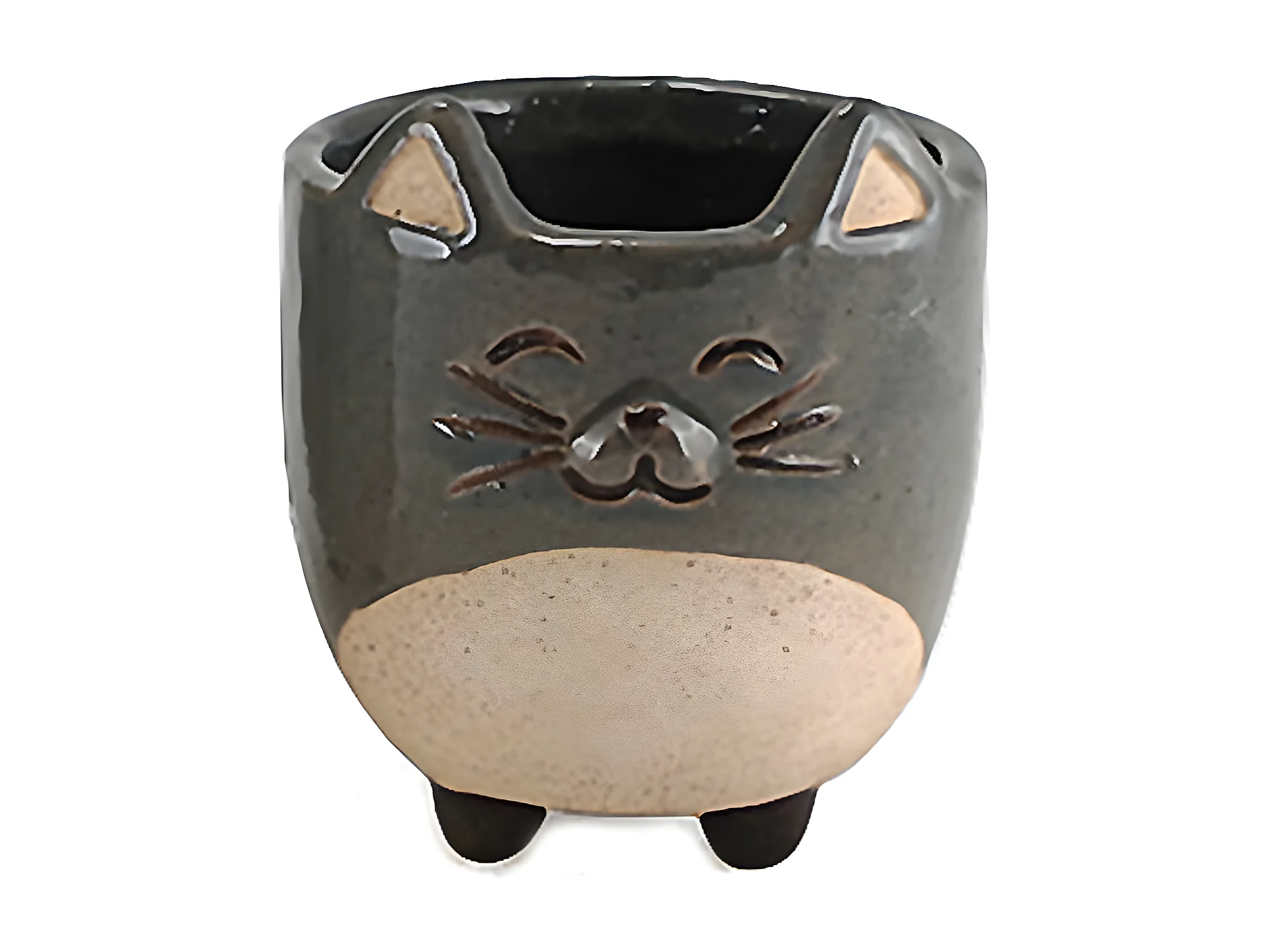 Petit cache pot chat gris 10 cm