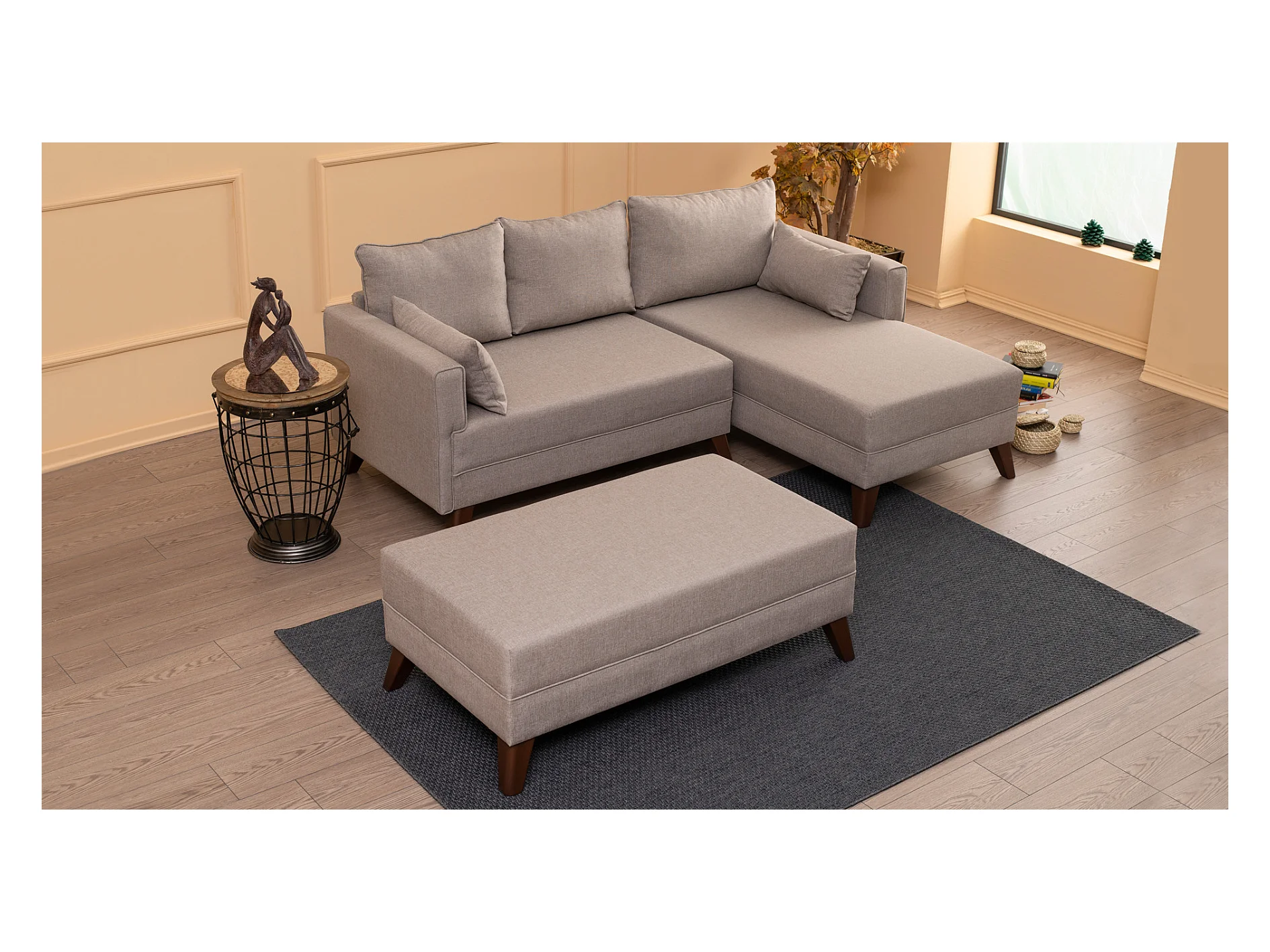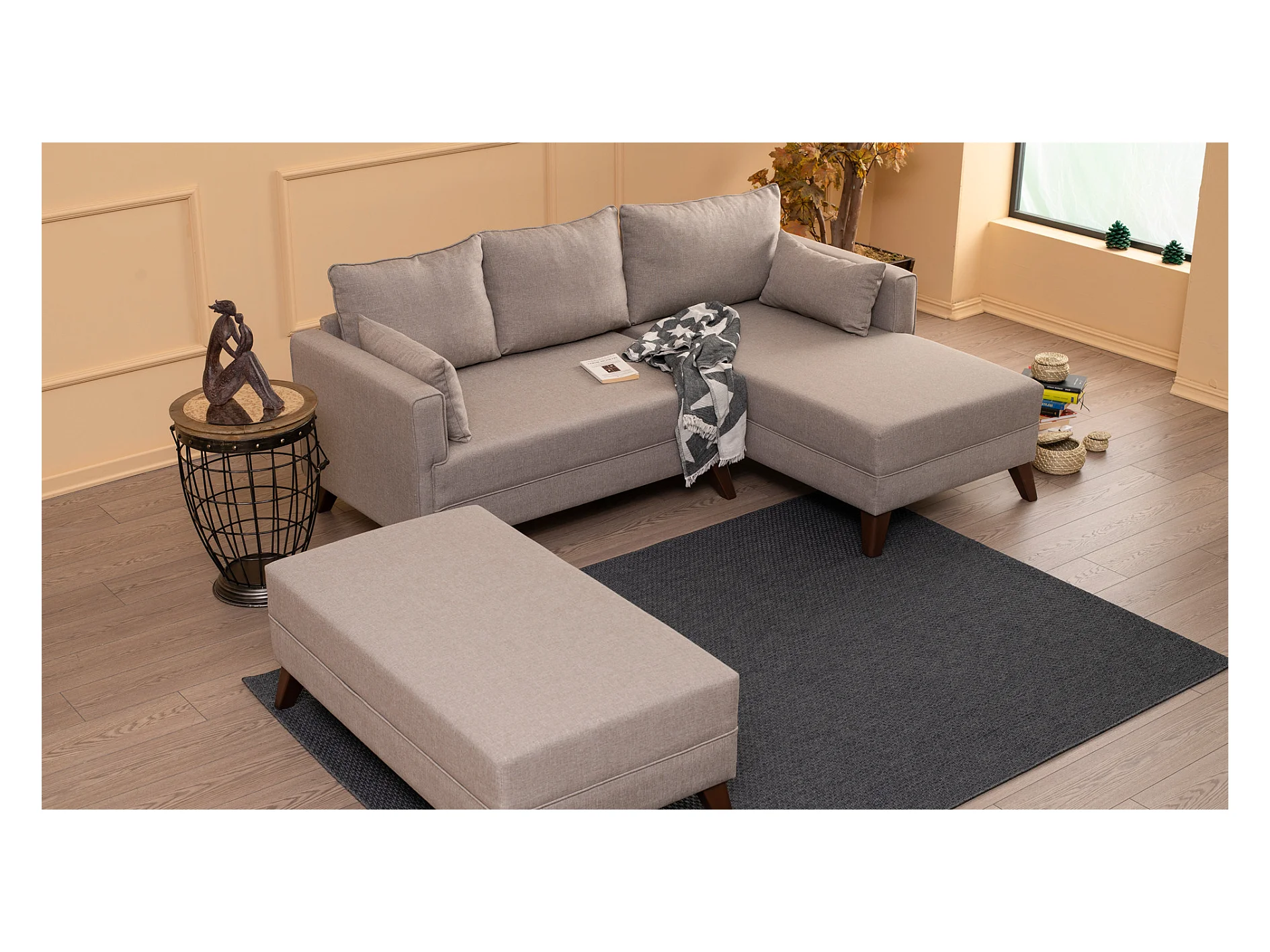 Petit canapé convertible d'angle droit avec pouf tissu beige Kandy 205cm