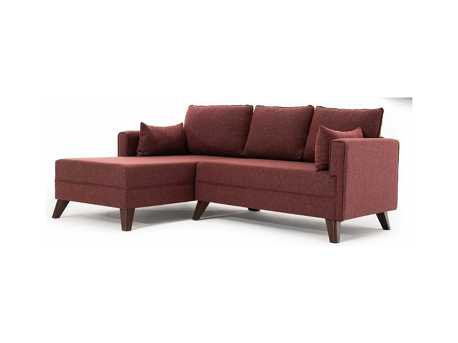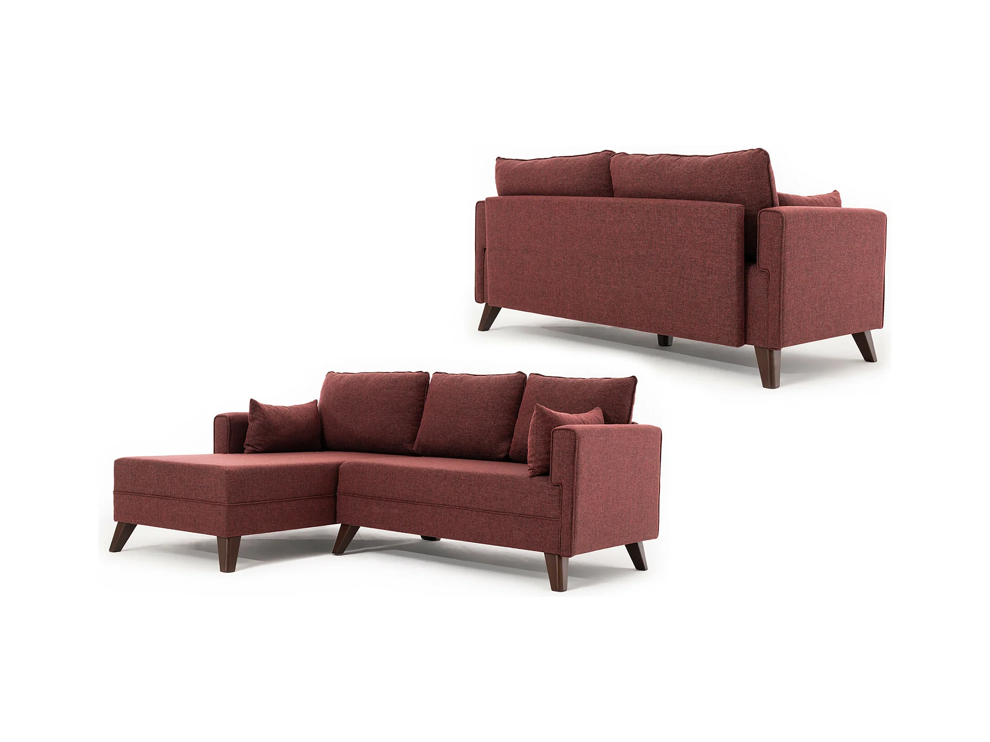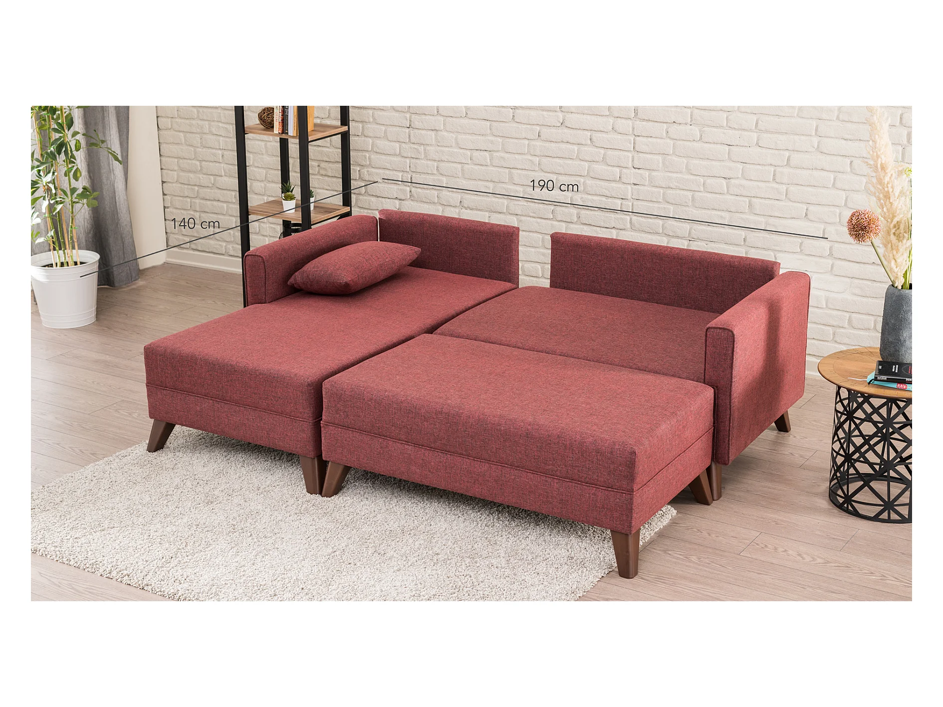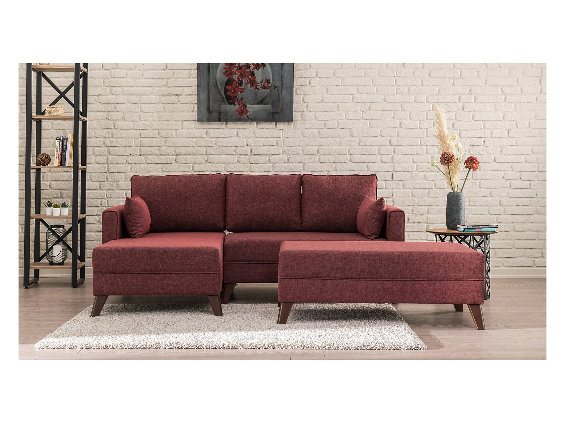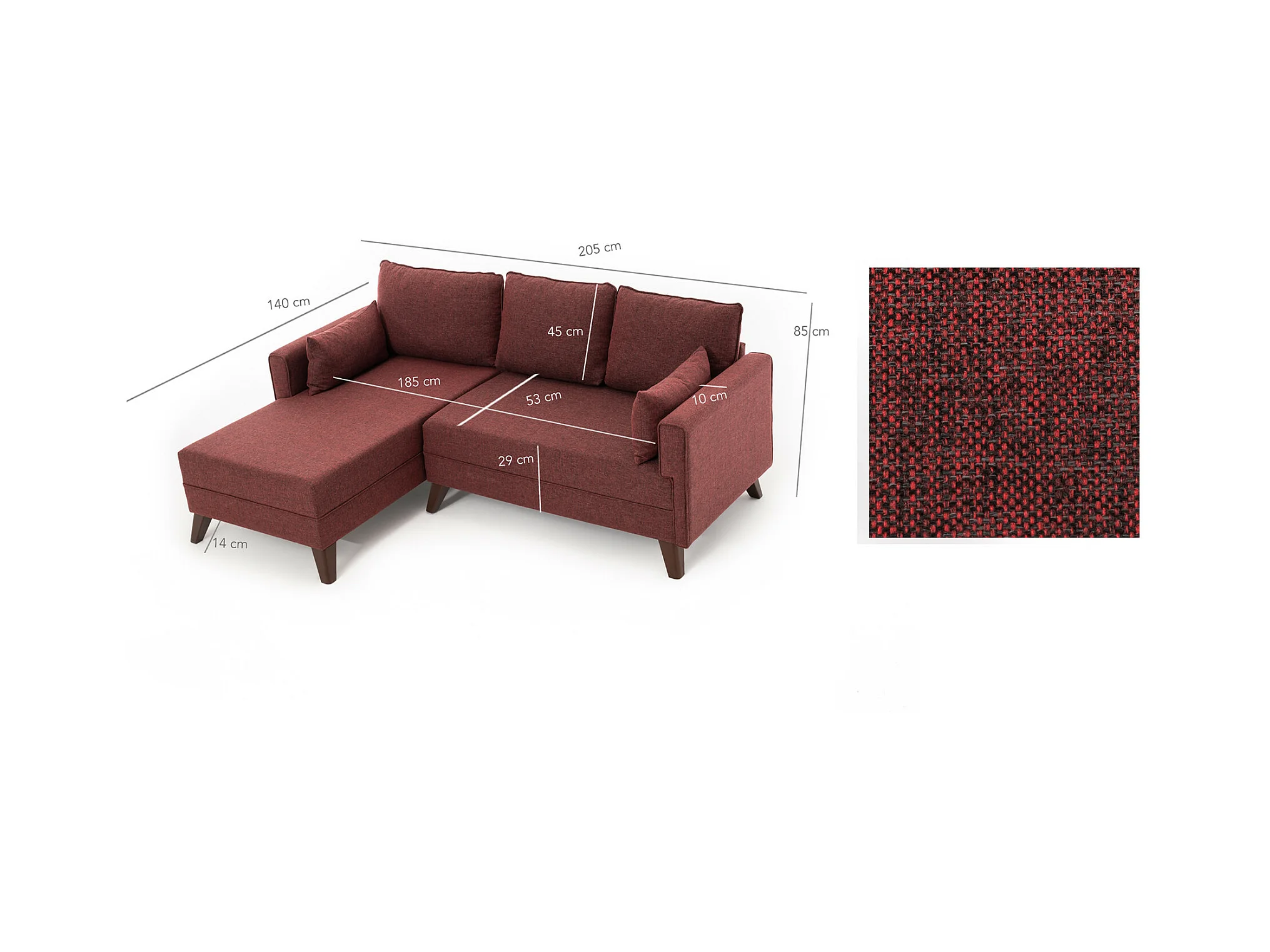 Petit canapé convertible d'angle gauche avec pouf tissu bordeaux Kandy 205cm