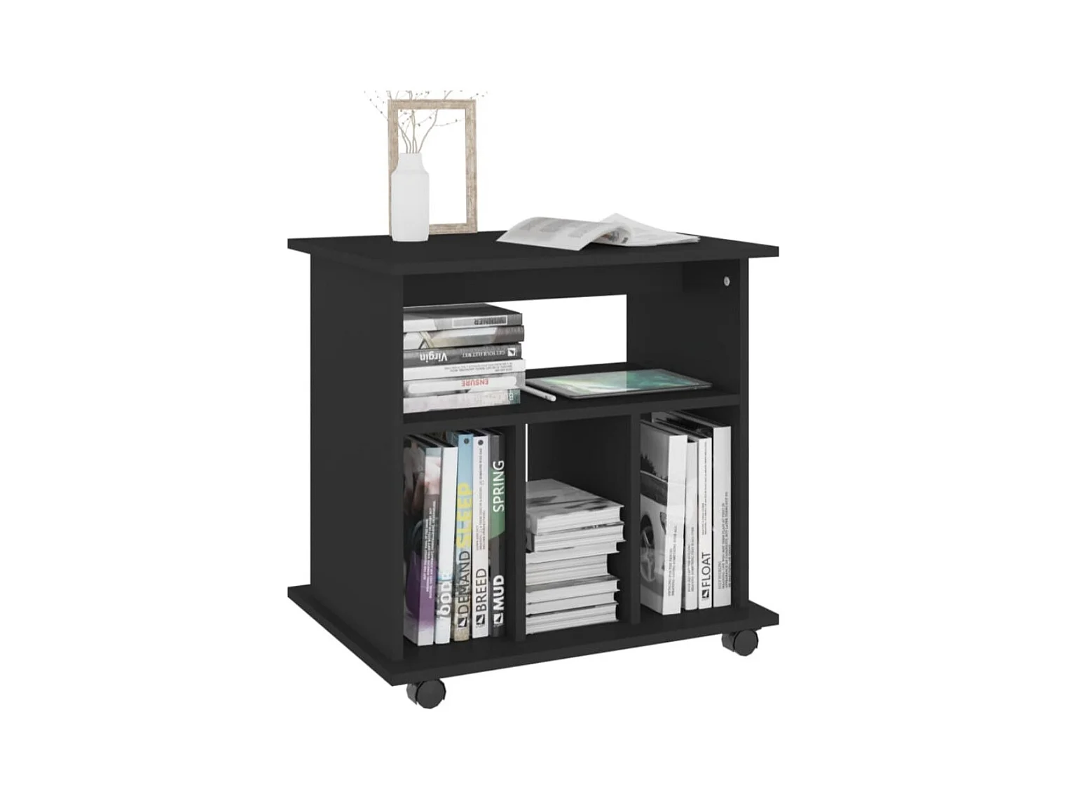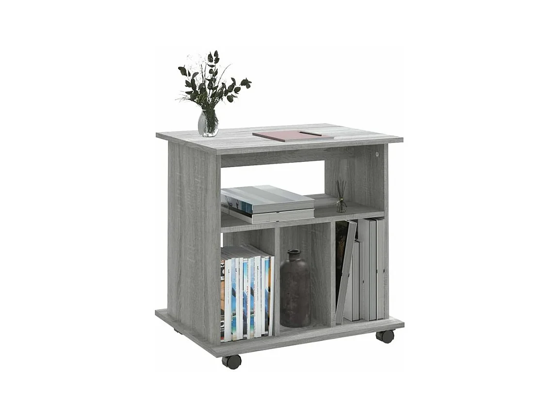 Petit meuble de rangement sur roulettes Burok 60cm – Discret et pratique-Couleur Chêne gris