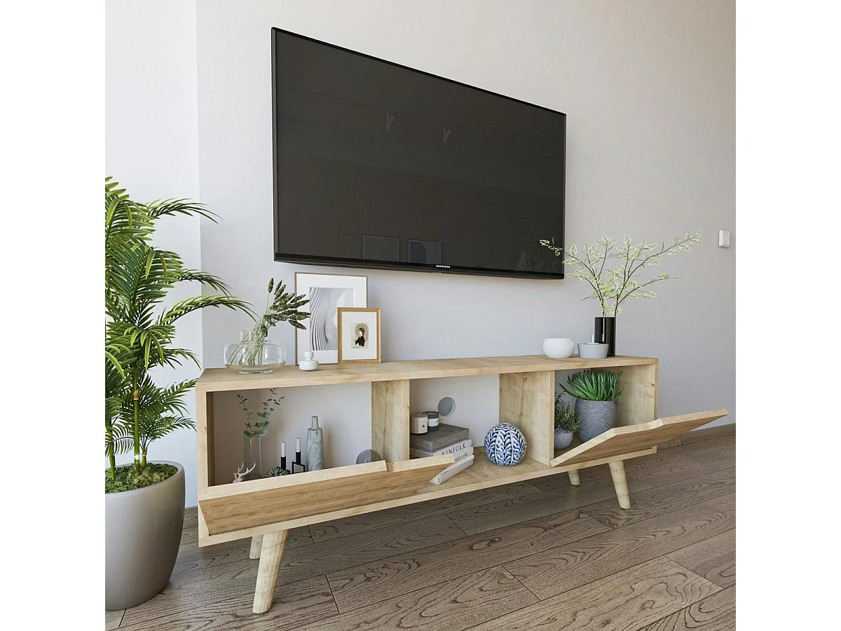 Petit meuble TV 2 portes effet bois clair poignées intégrées MARFA