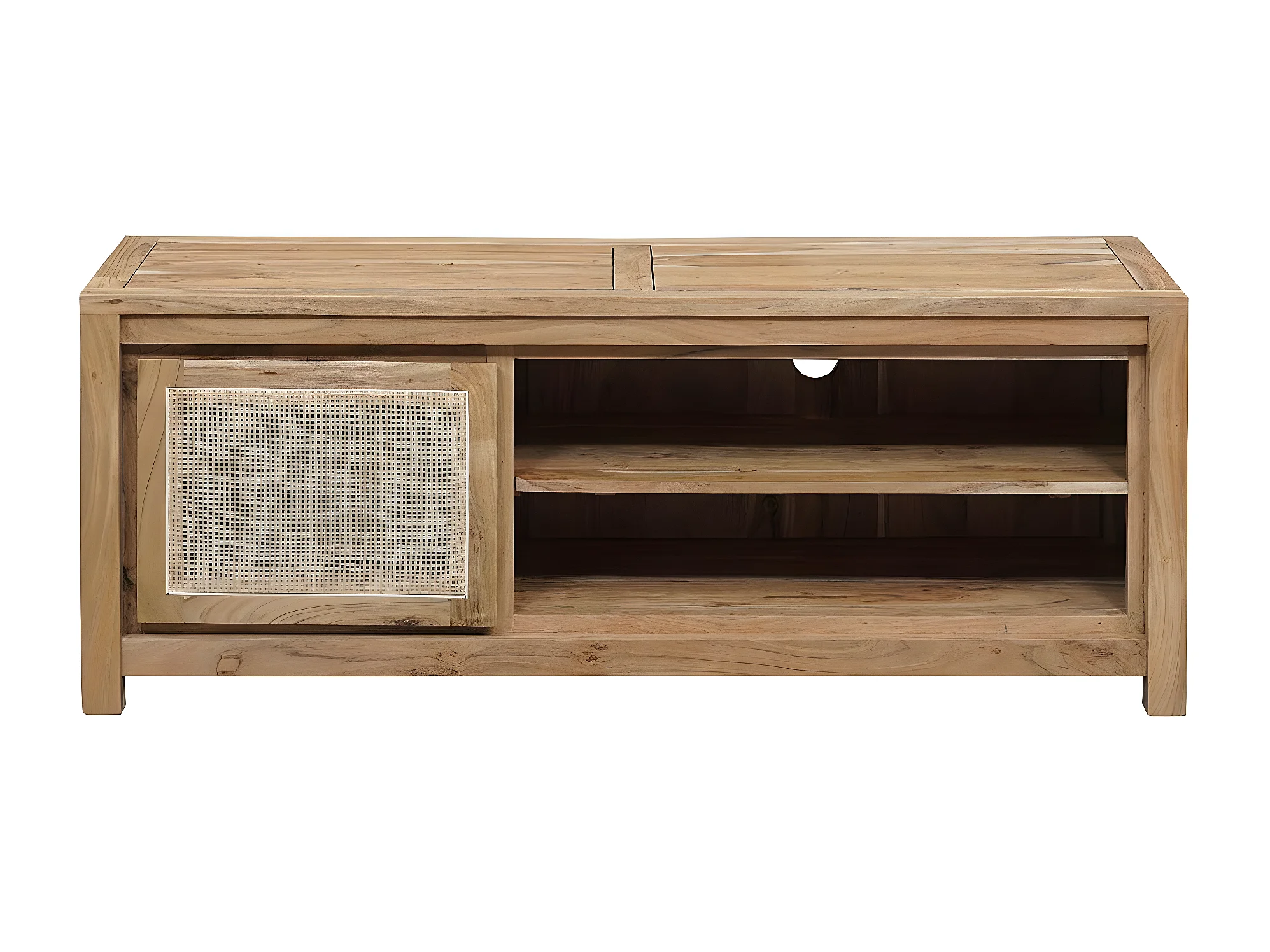 Petit meuble Tv bois nature porte cannage | Acacia Tatoo II