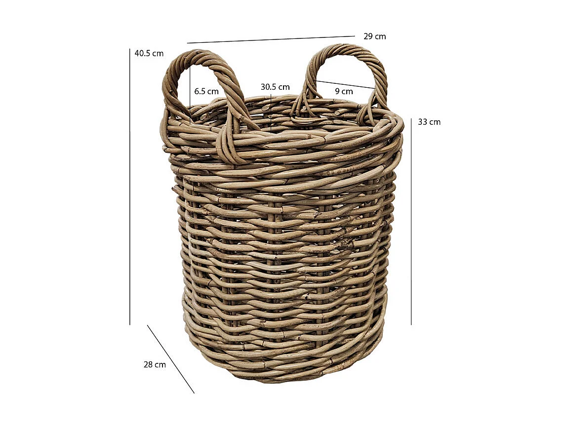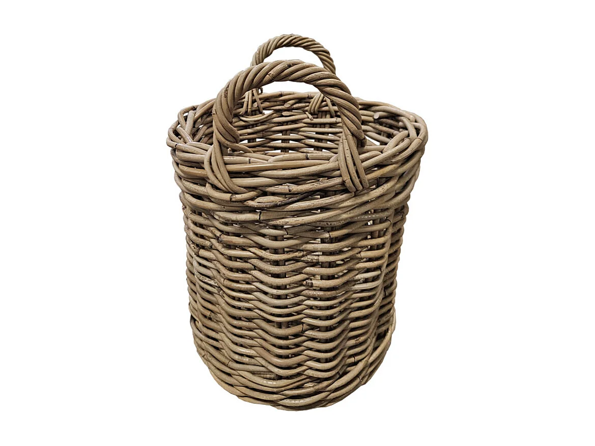 Petit panier rond H. 41 cm avec anses en kubu naturel tressé - INAYA
