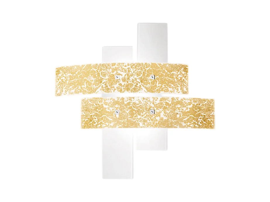 Petit plafonnier Lara verre blanc, détails or, 70x70cm, 2xE27 max 70W, style moderne, ampoules non incluses, IP20
