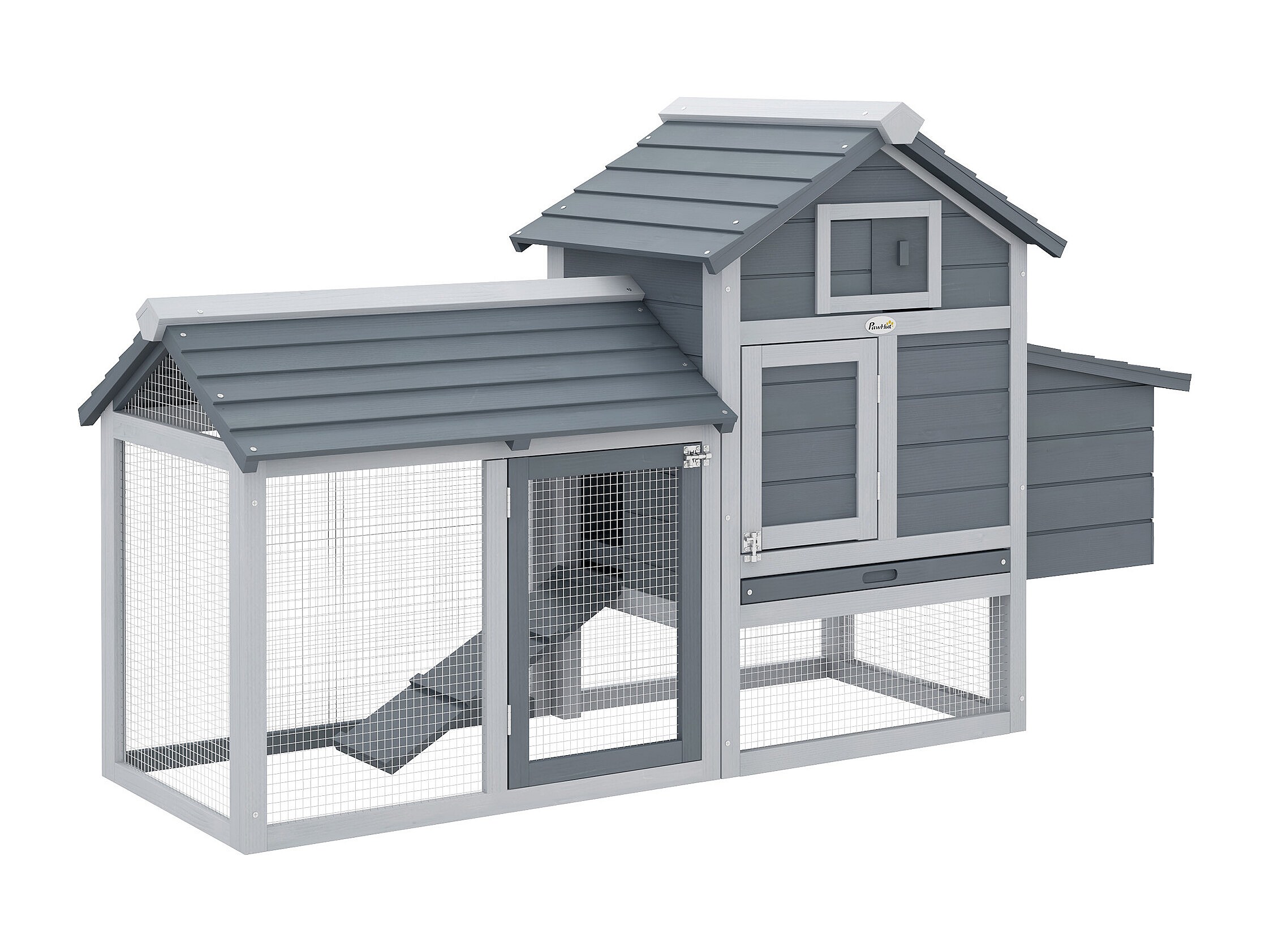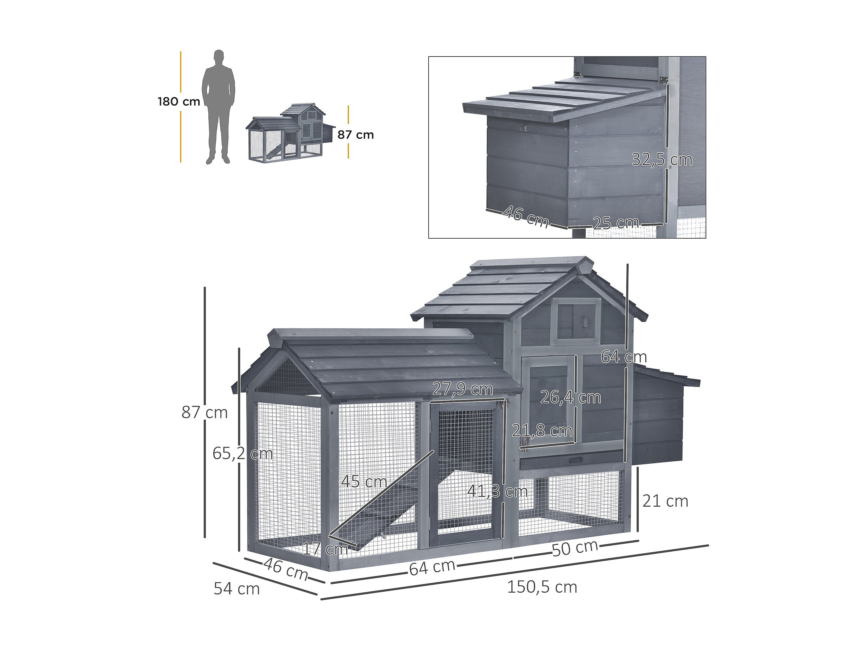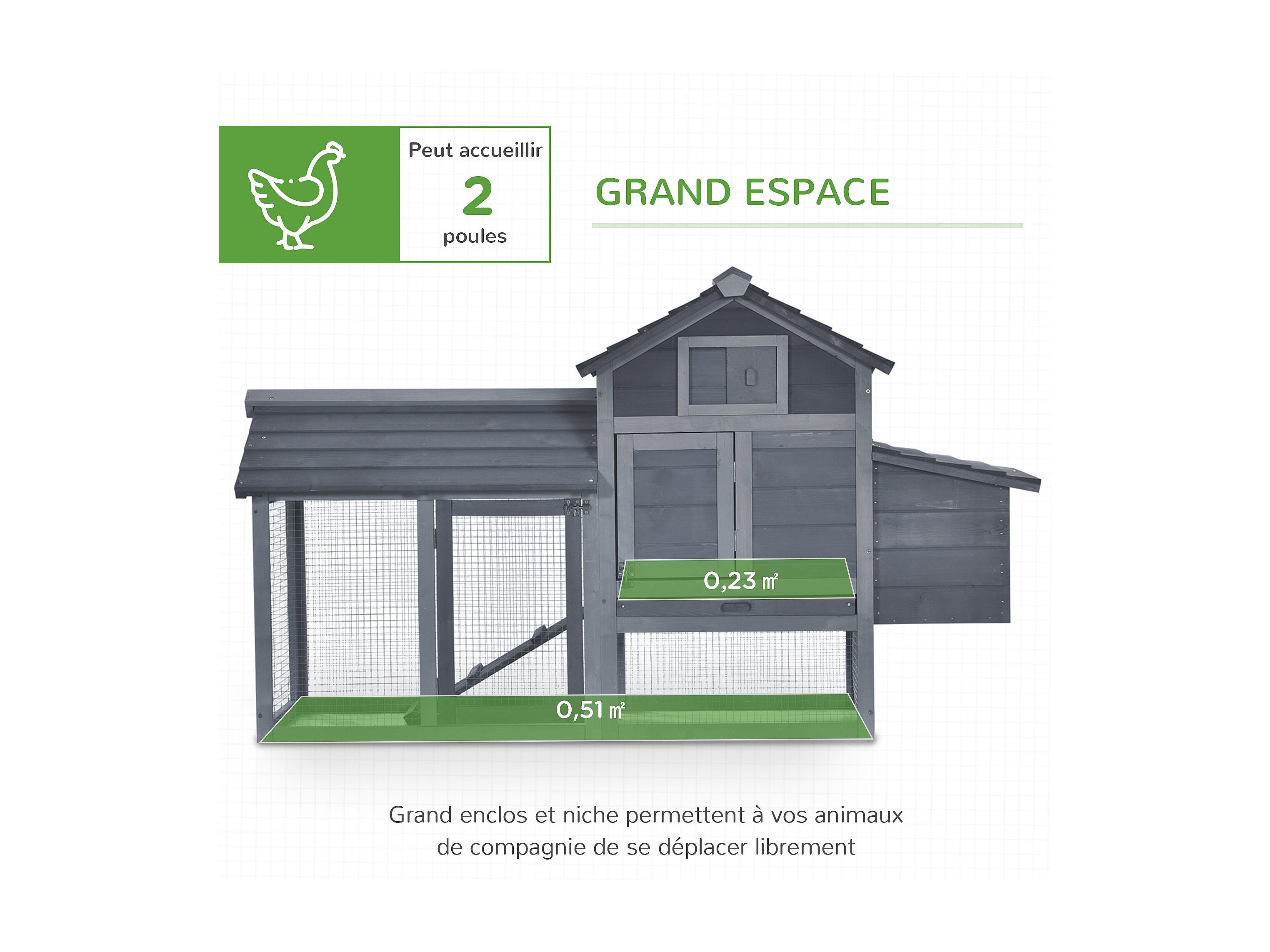 Poulailler en bois 2 enclos modulables niche pondoir gris