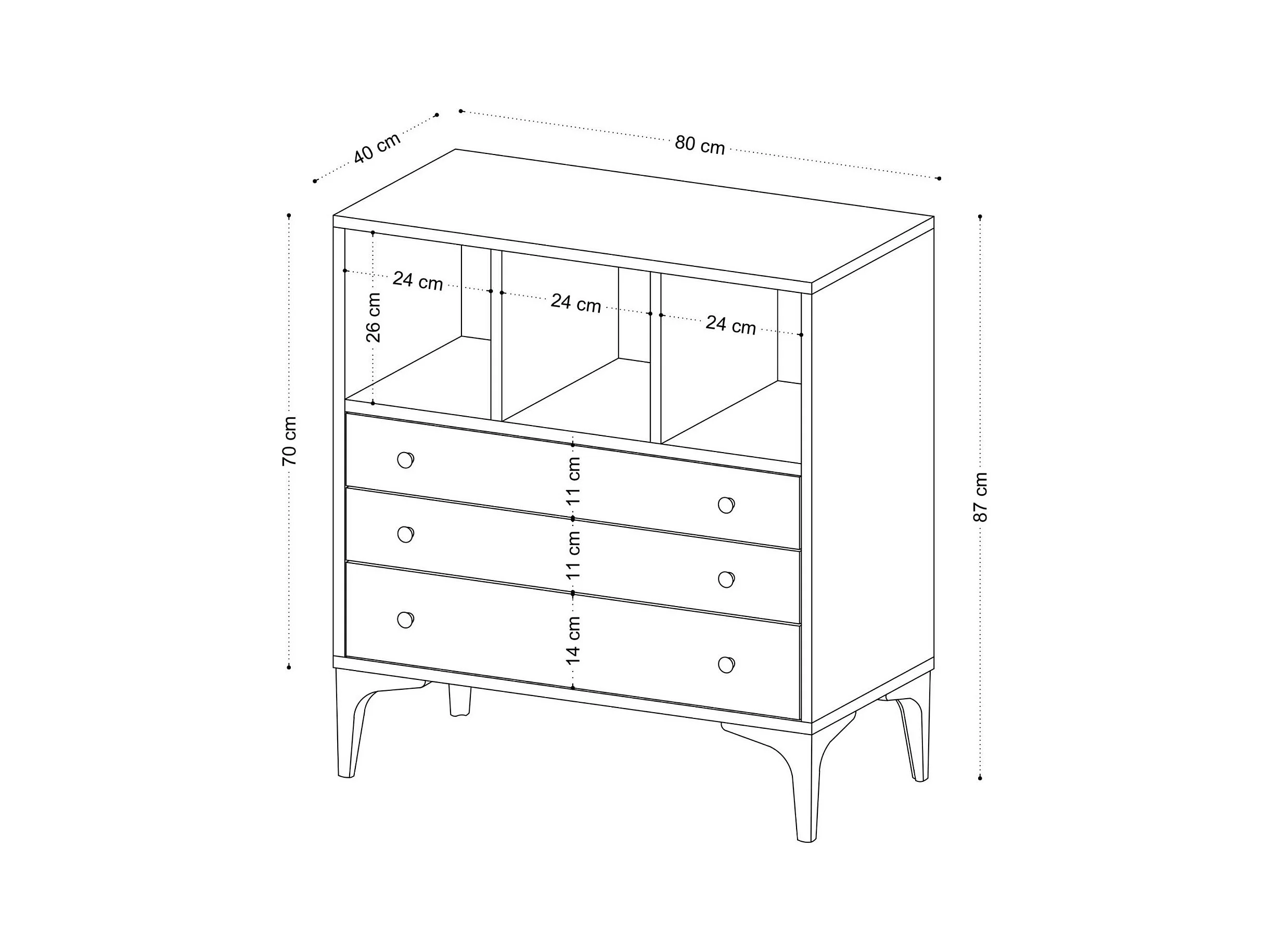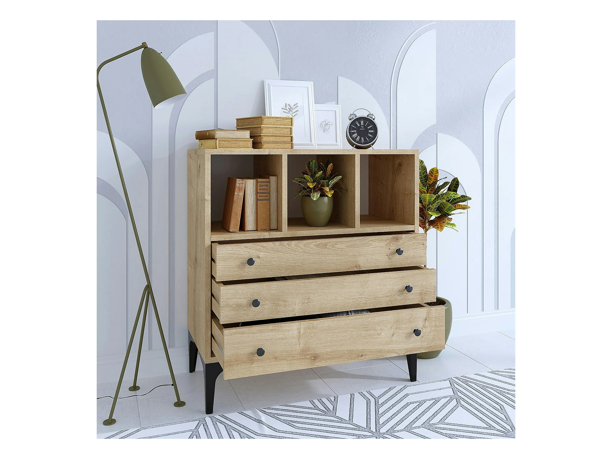 Petite commode 3 tiroirs et 3 niches décoratives JENA