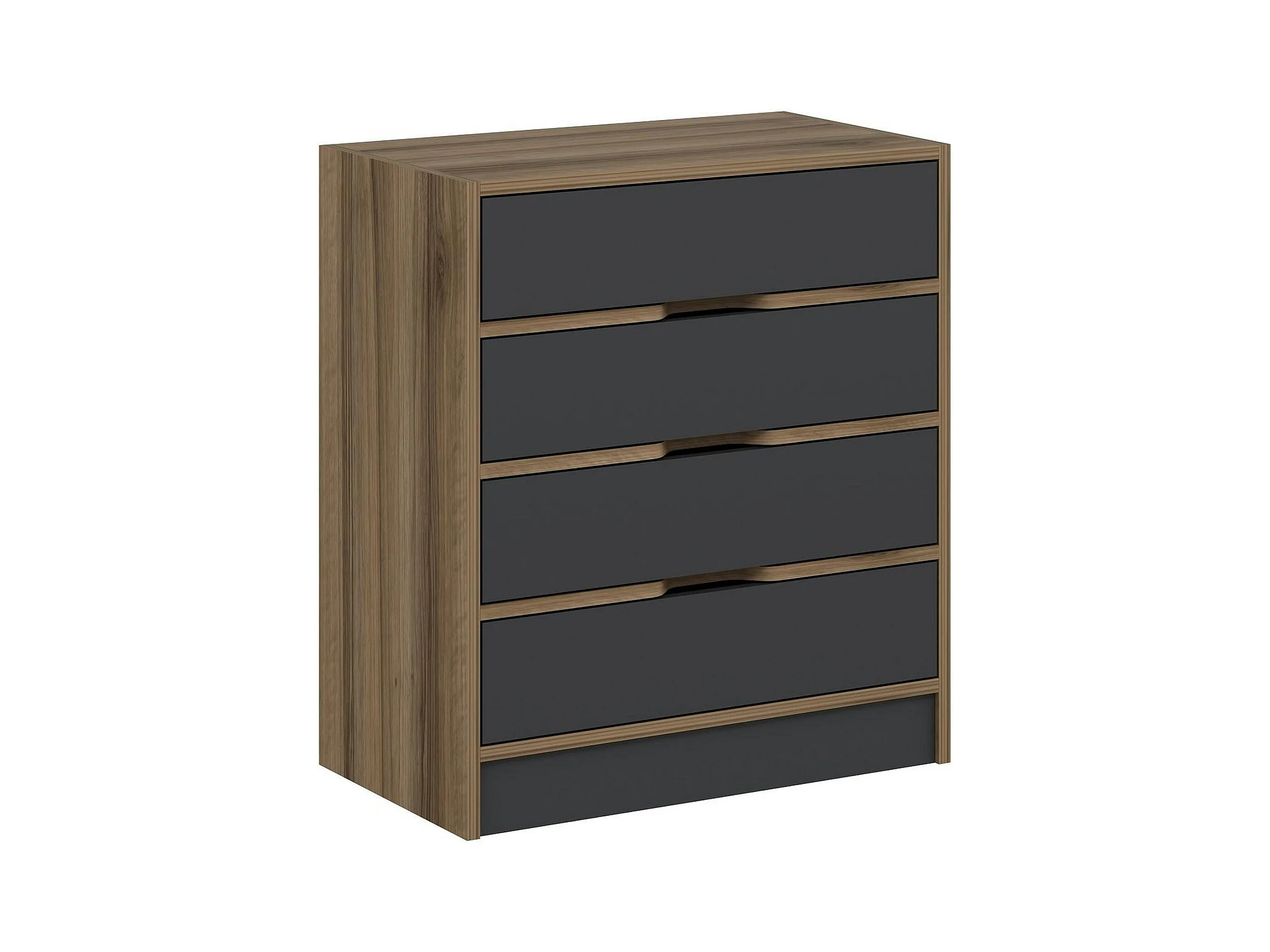 Petite commode moderne 4 tiroirs effet noyer & gris BYRON