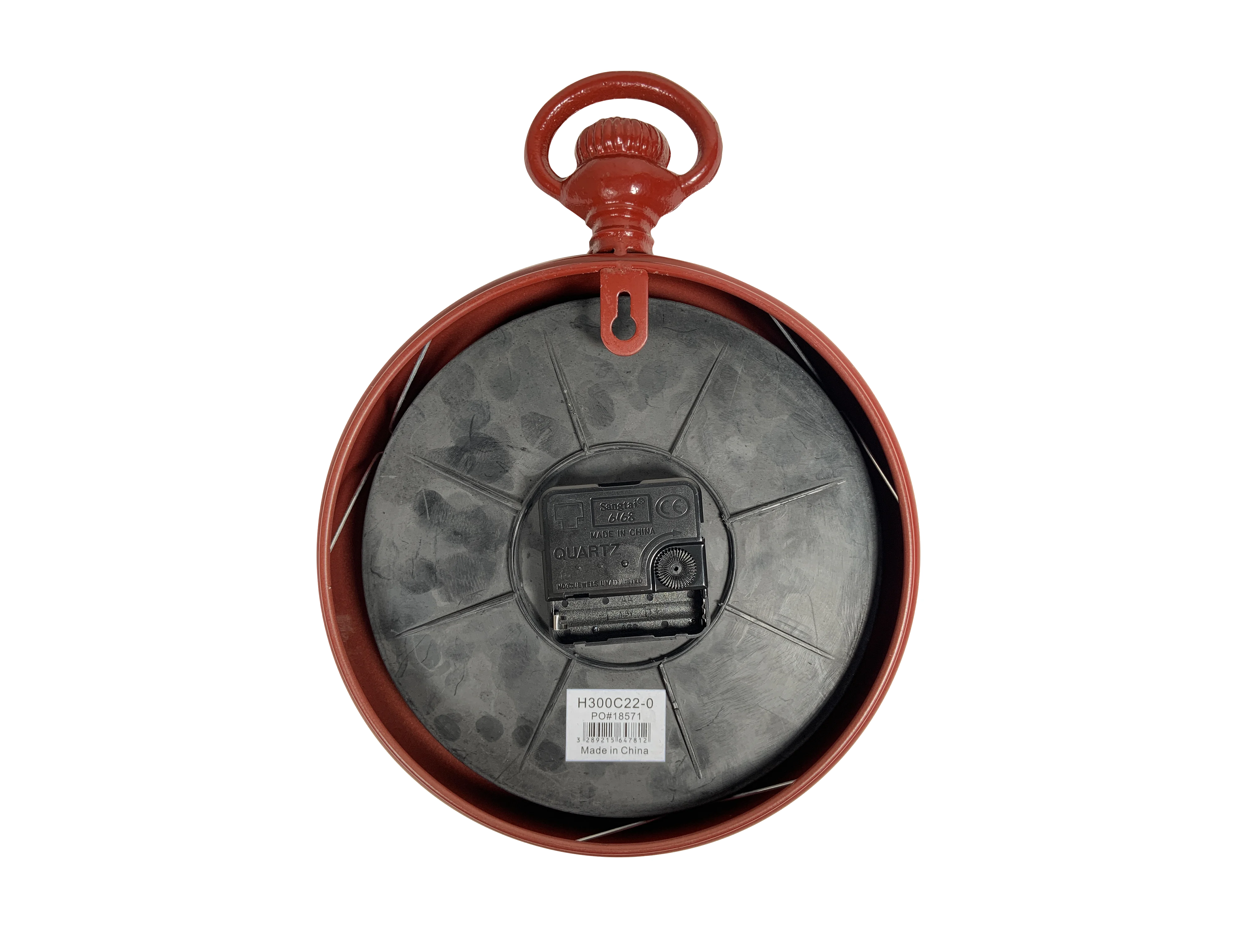 Petite horloge ronde métal rouge 22x28cm