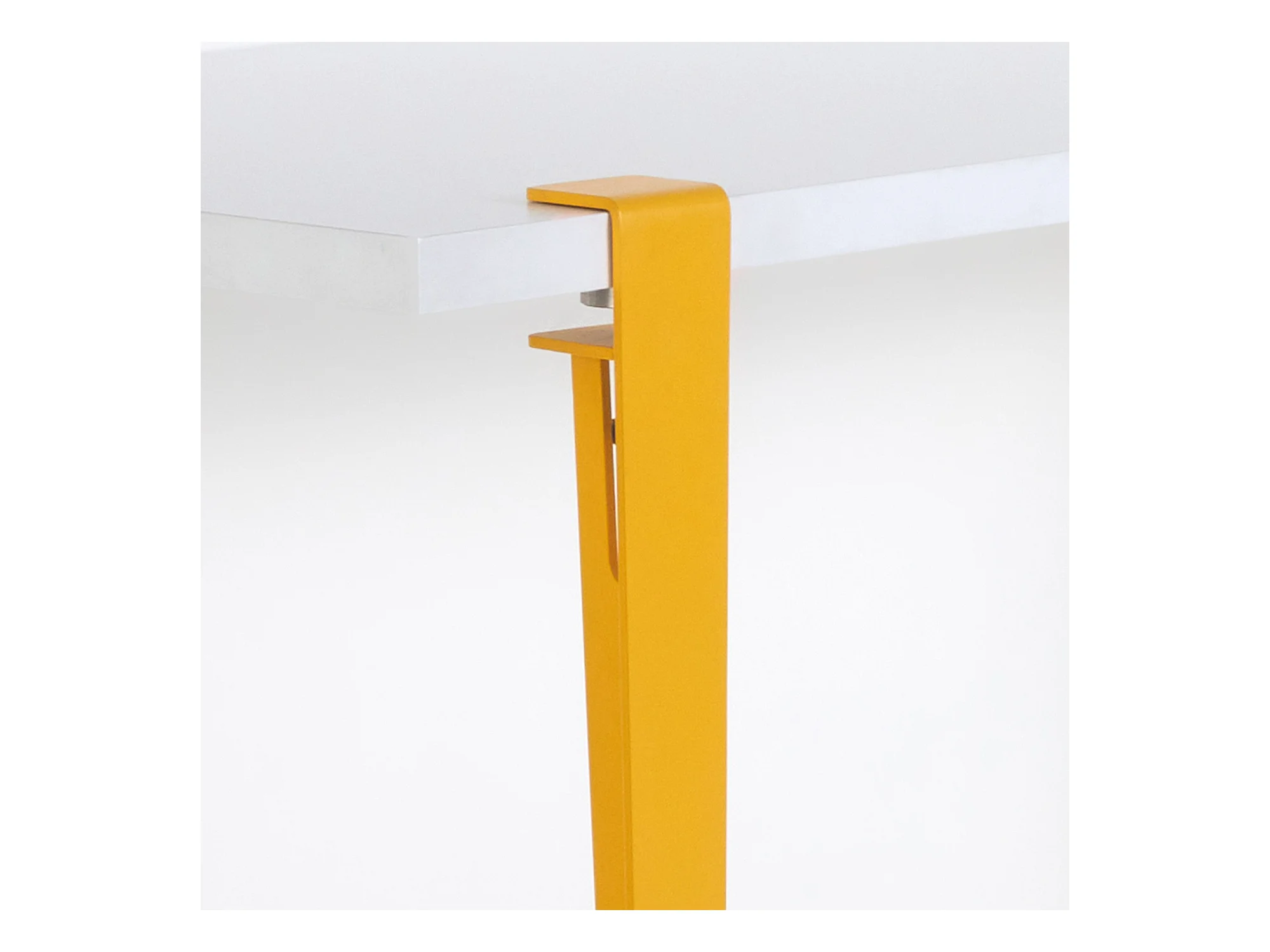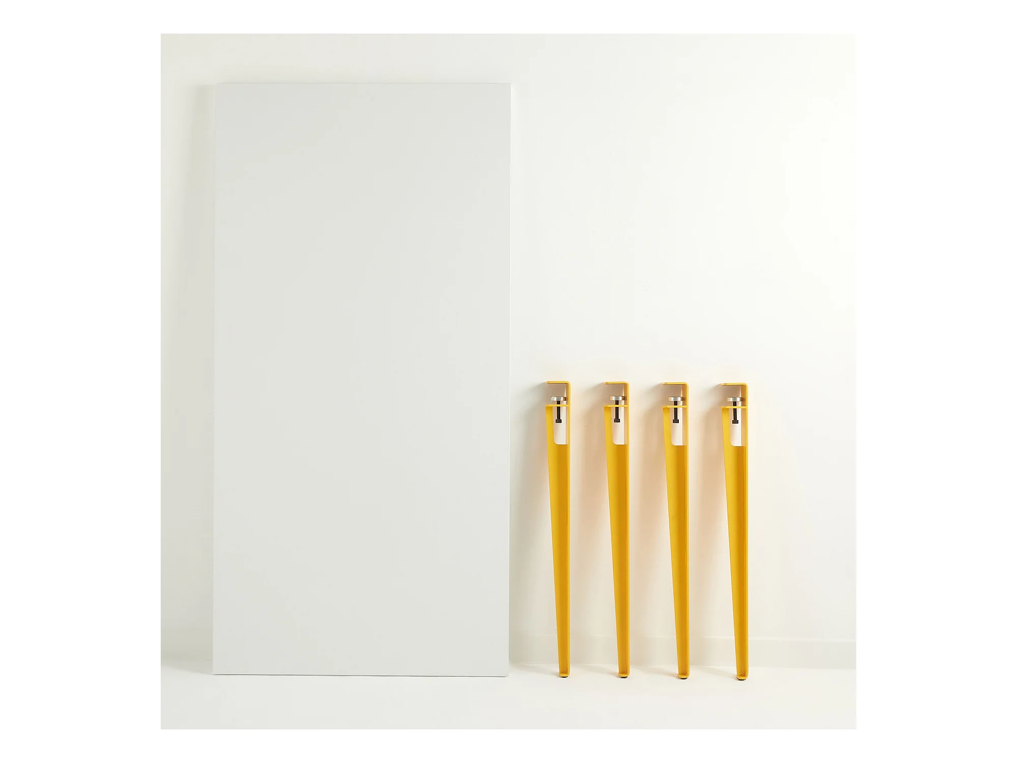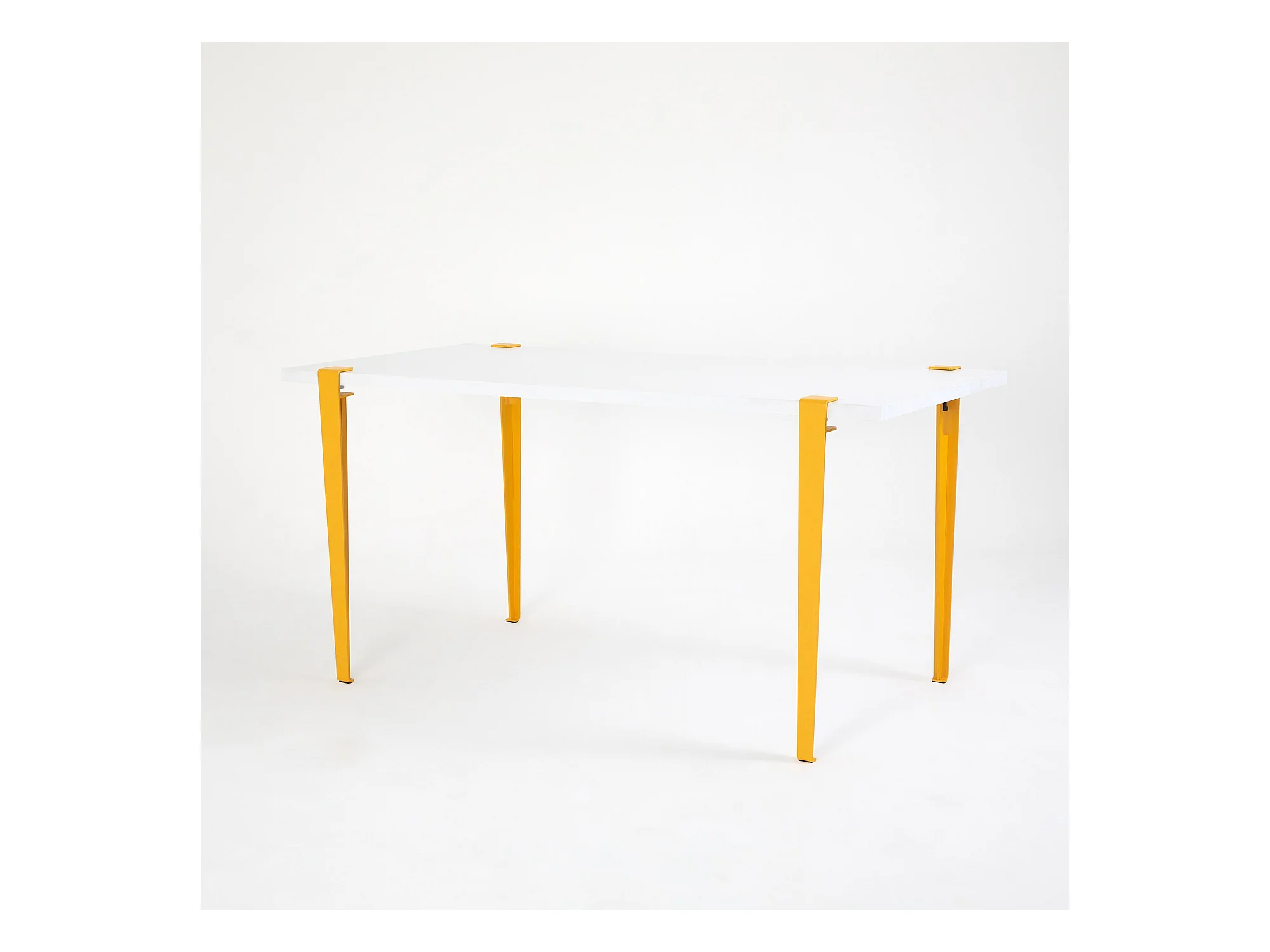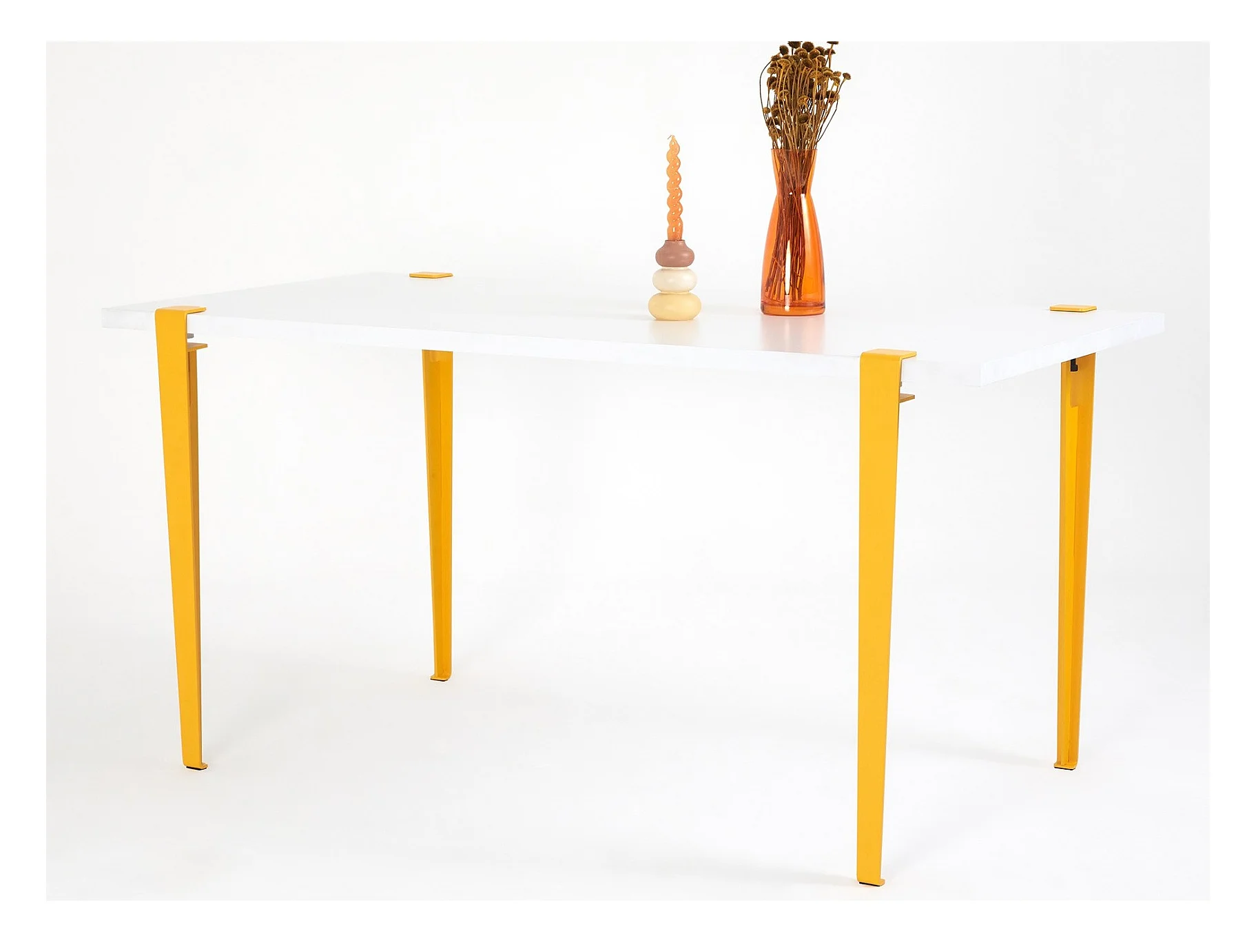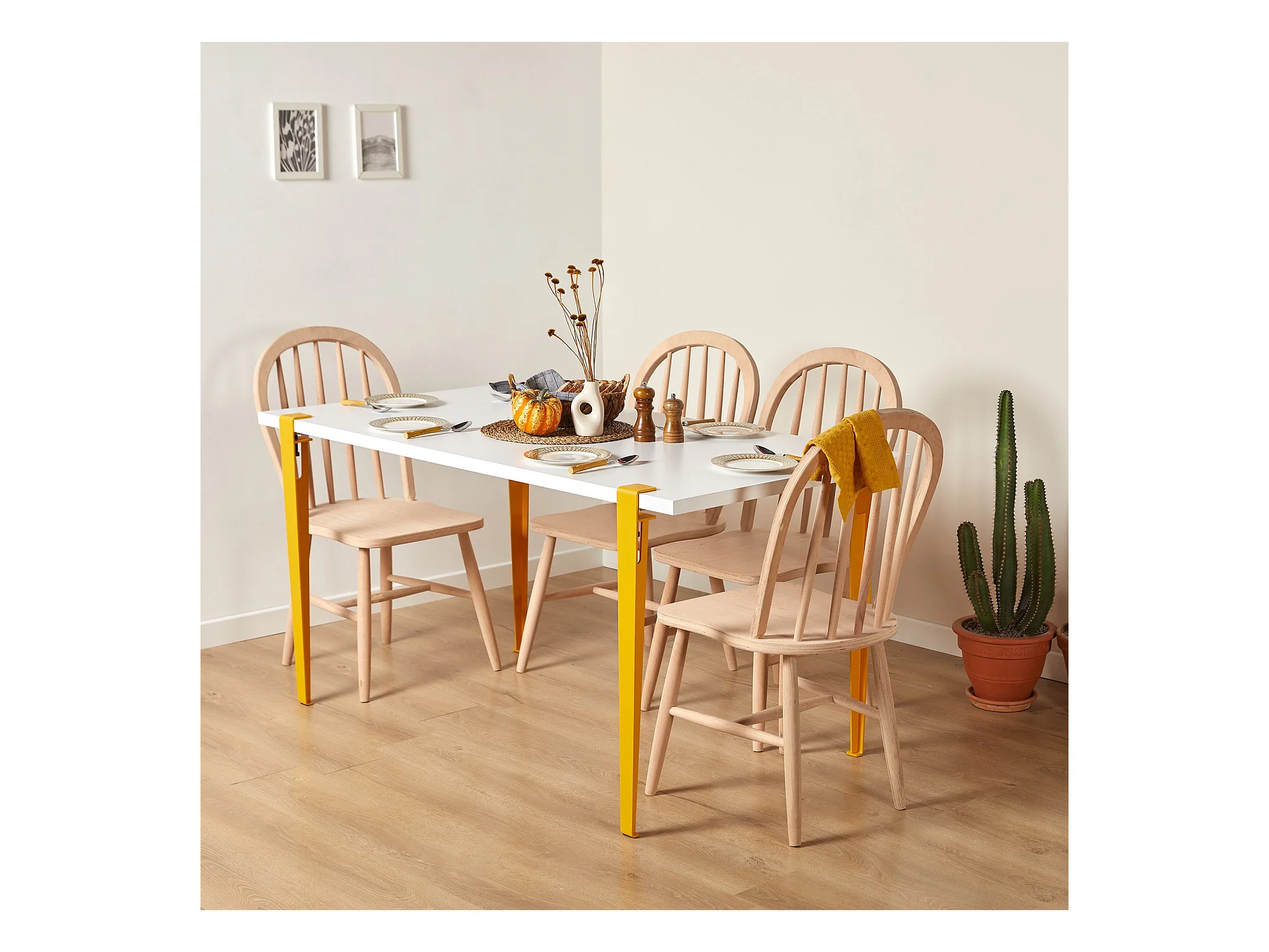 Petite table à manger bois blanc et pieds acier jaune Bazika 150cm