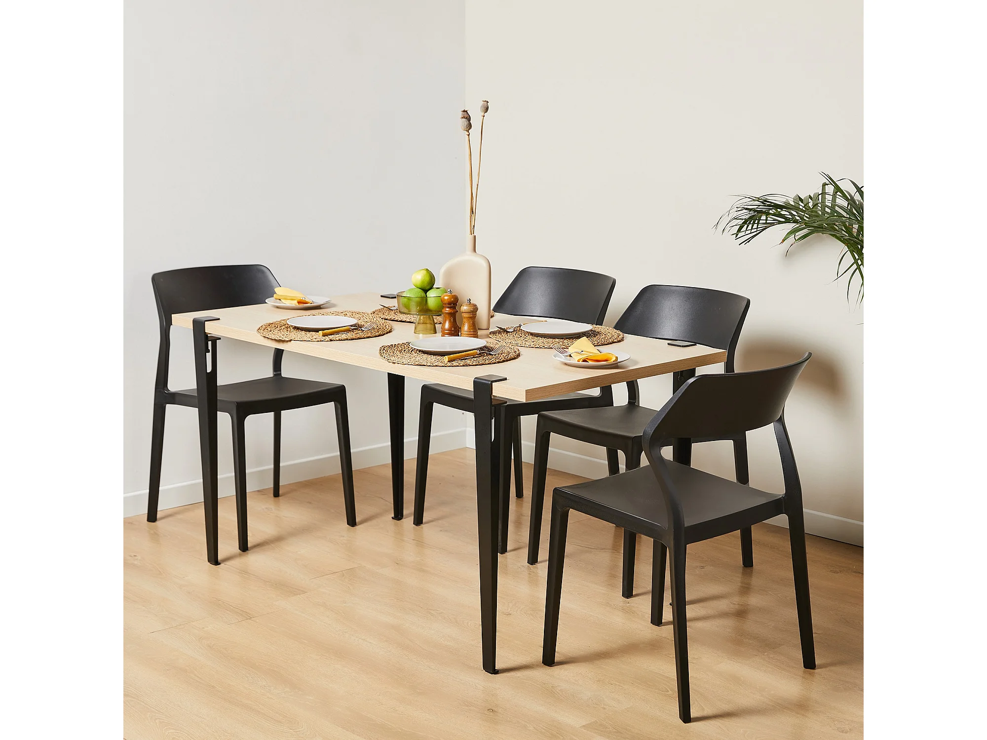 Petite table à manger bois clair et pieds acier noir Bazika 150cm