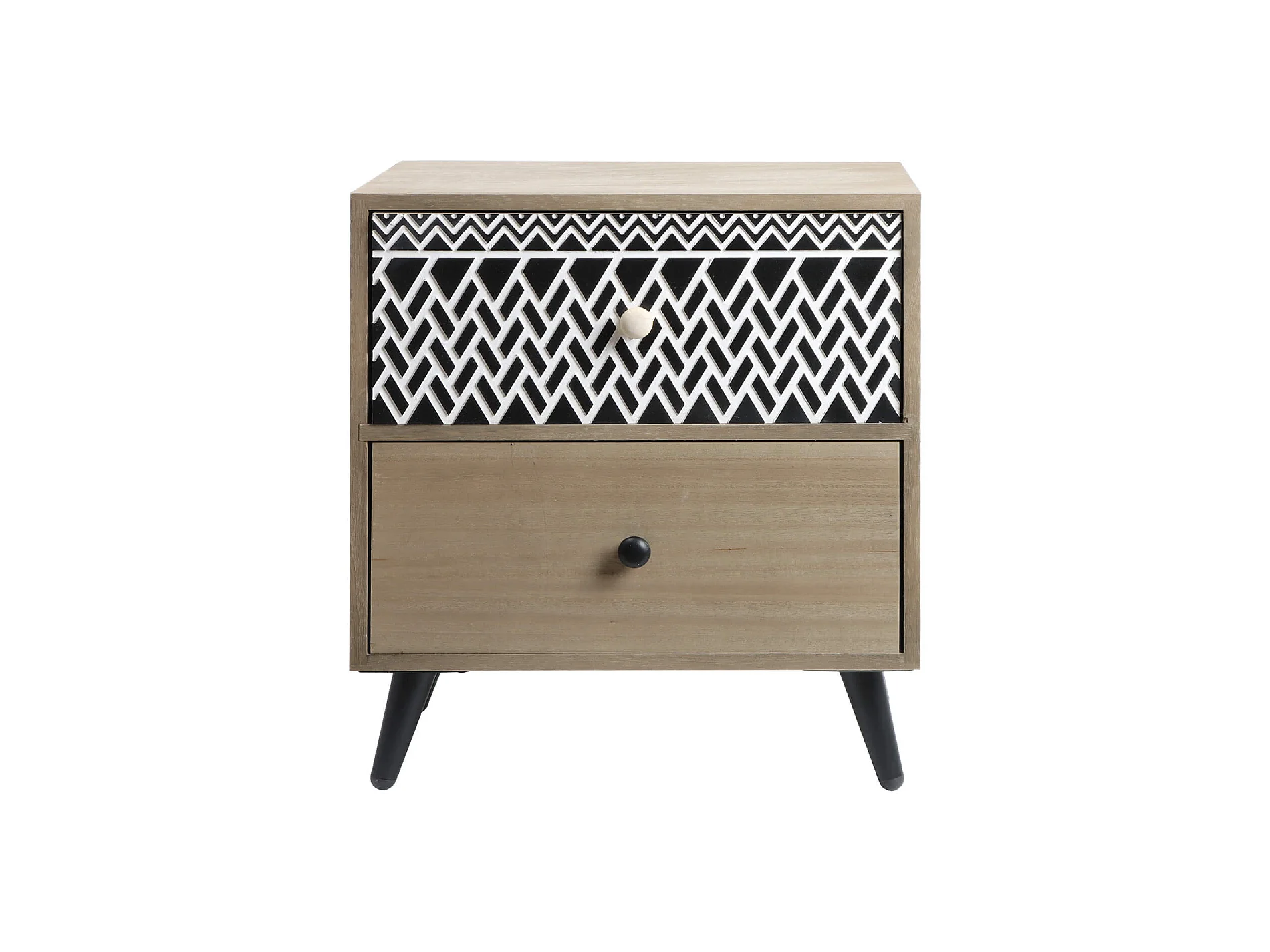 Table de Chevet avec 3 Tiroirs en Bois et Métal Style Boho Scandinave