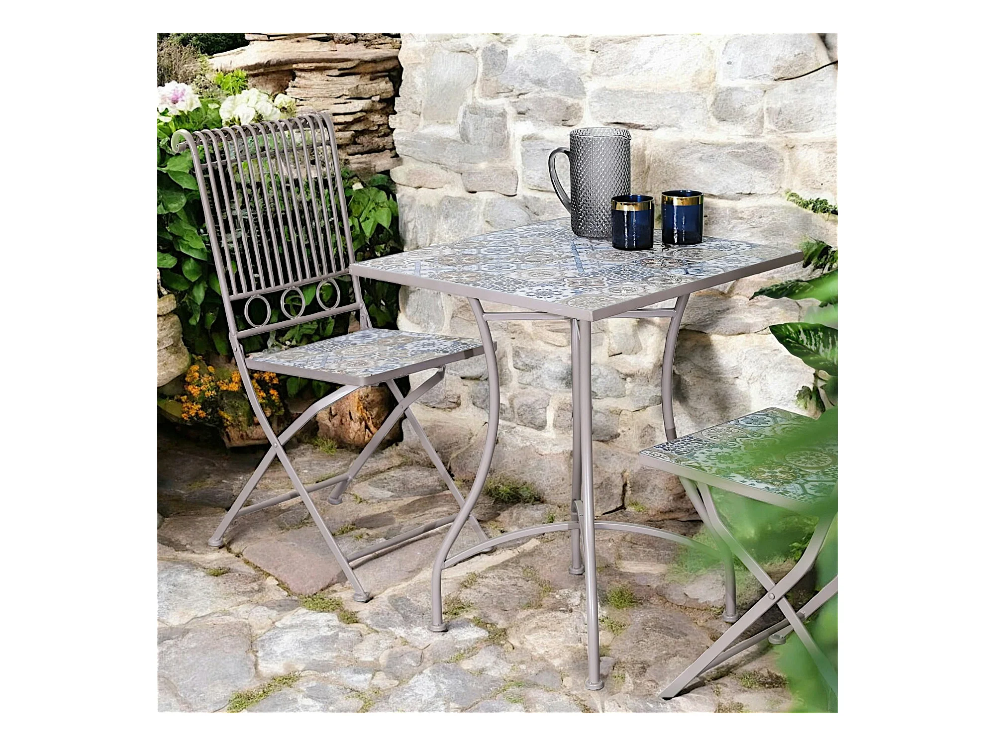 Petite table de jardin carreaux de ciment bleu et taupe 58 cm GRENADE