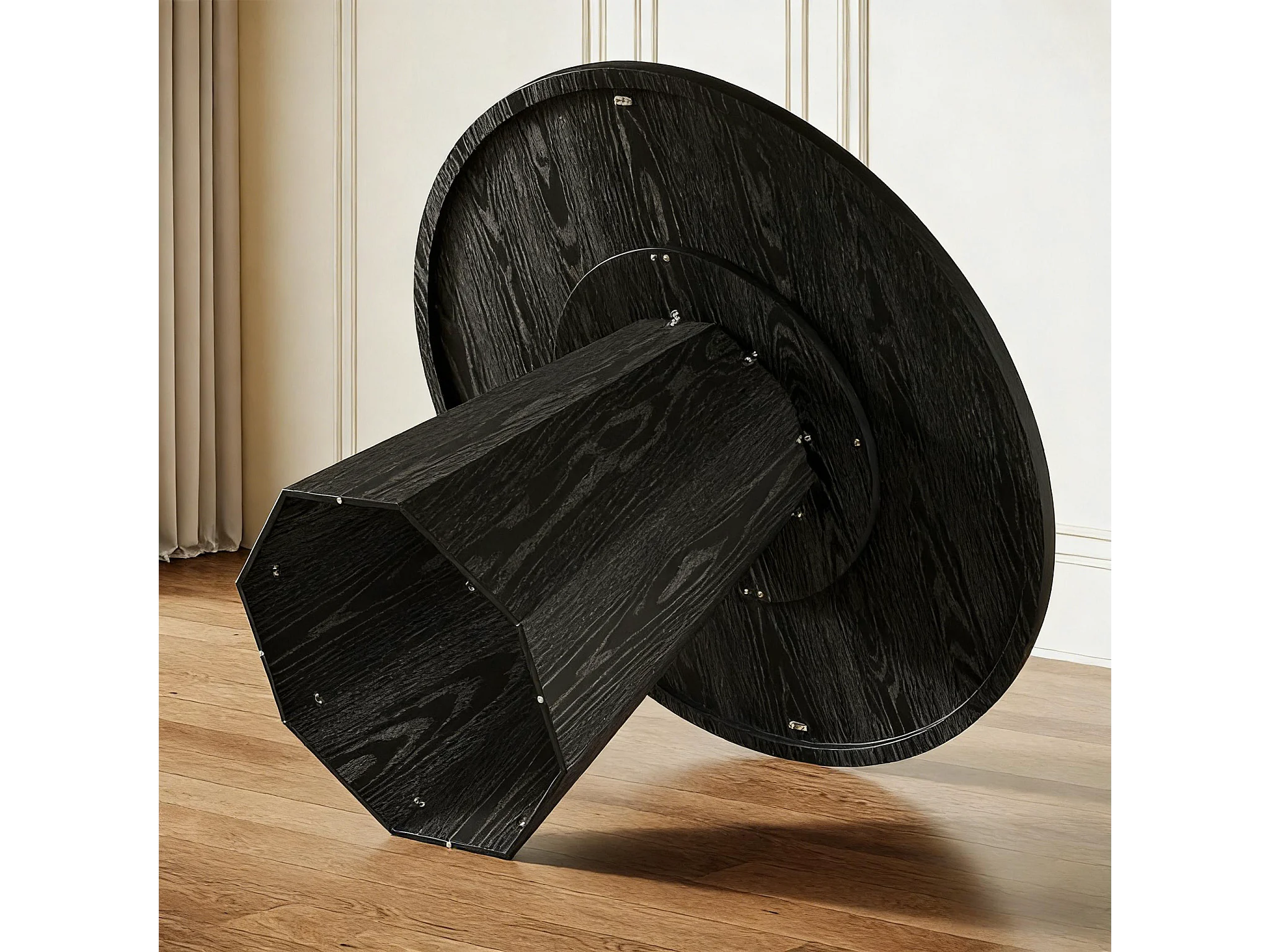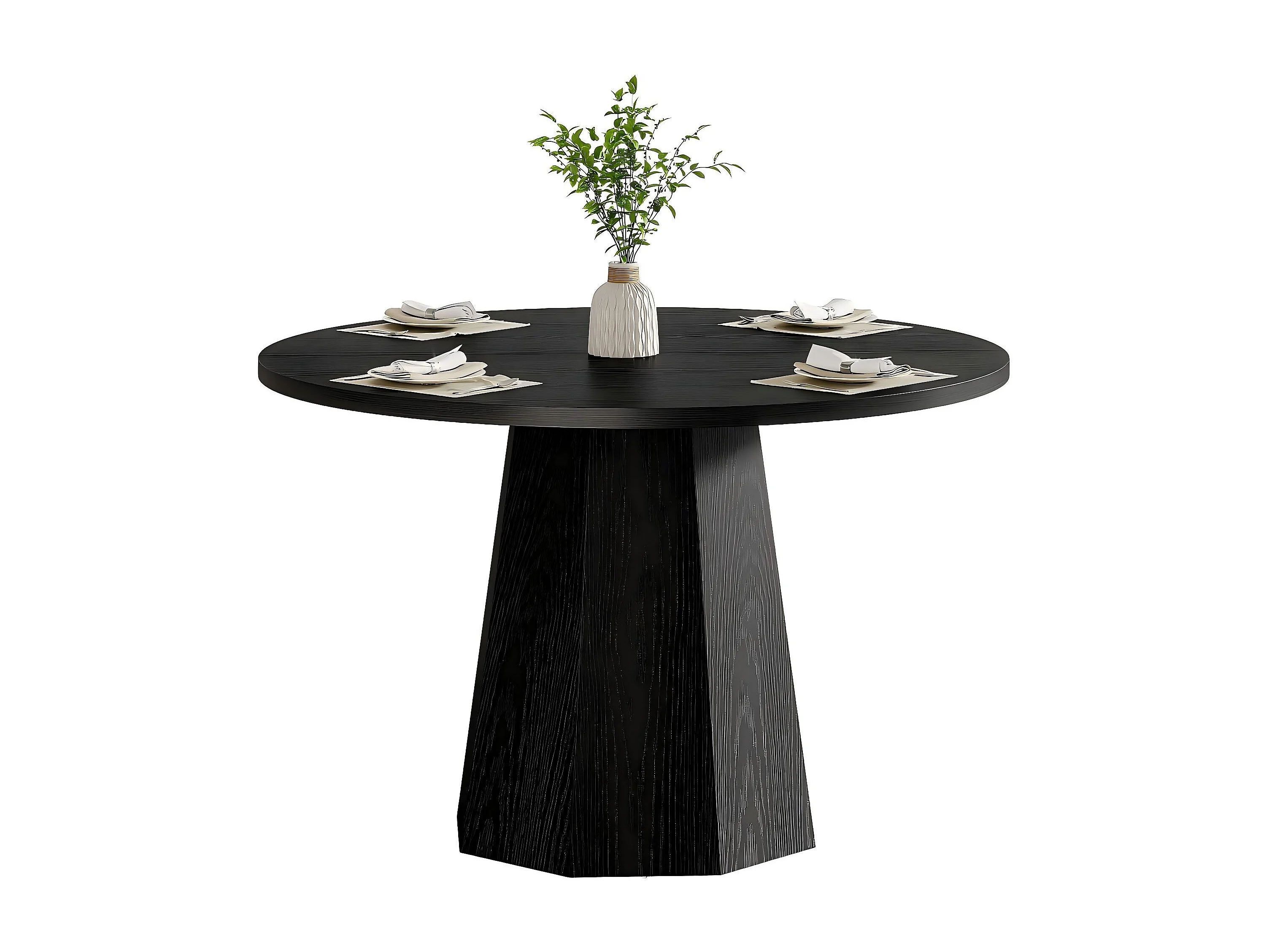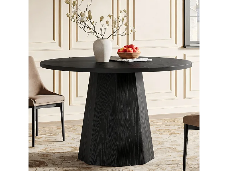 Petite table de salle à manger ronde noire de 118 cm avec piédestal incliné robuste, meuble moderne pour salle à manger, salon