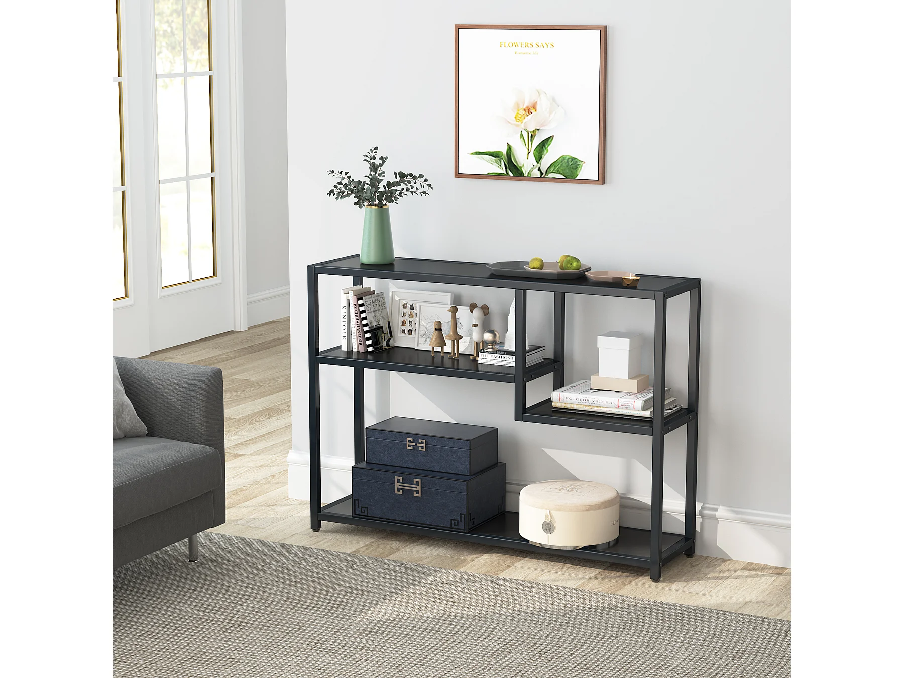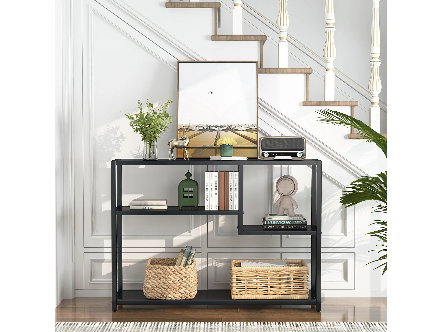 Petite Table d'entrée Noire avec Compartiments de Rangement, 108 cm