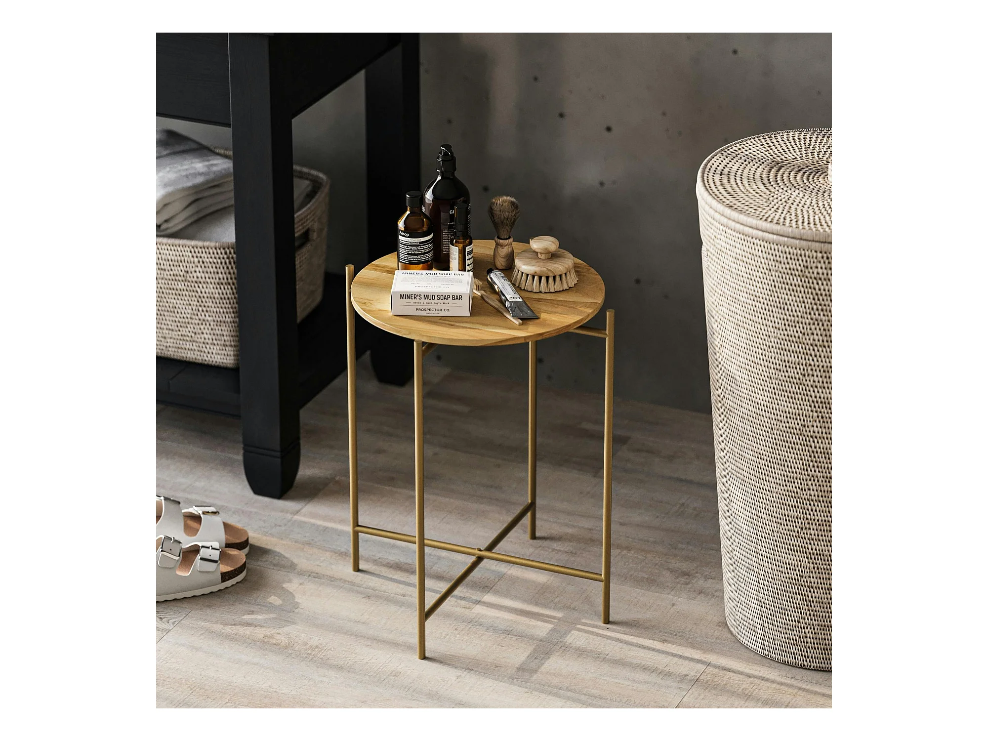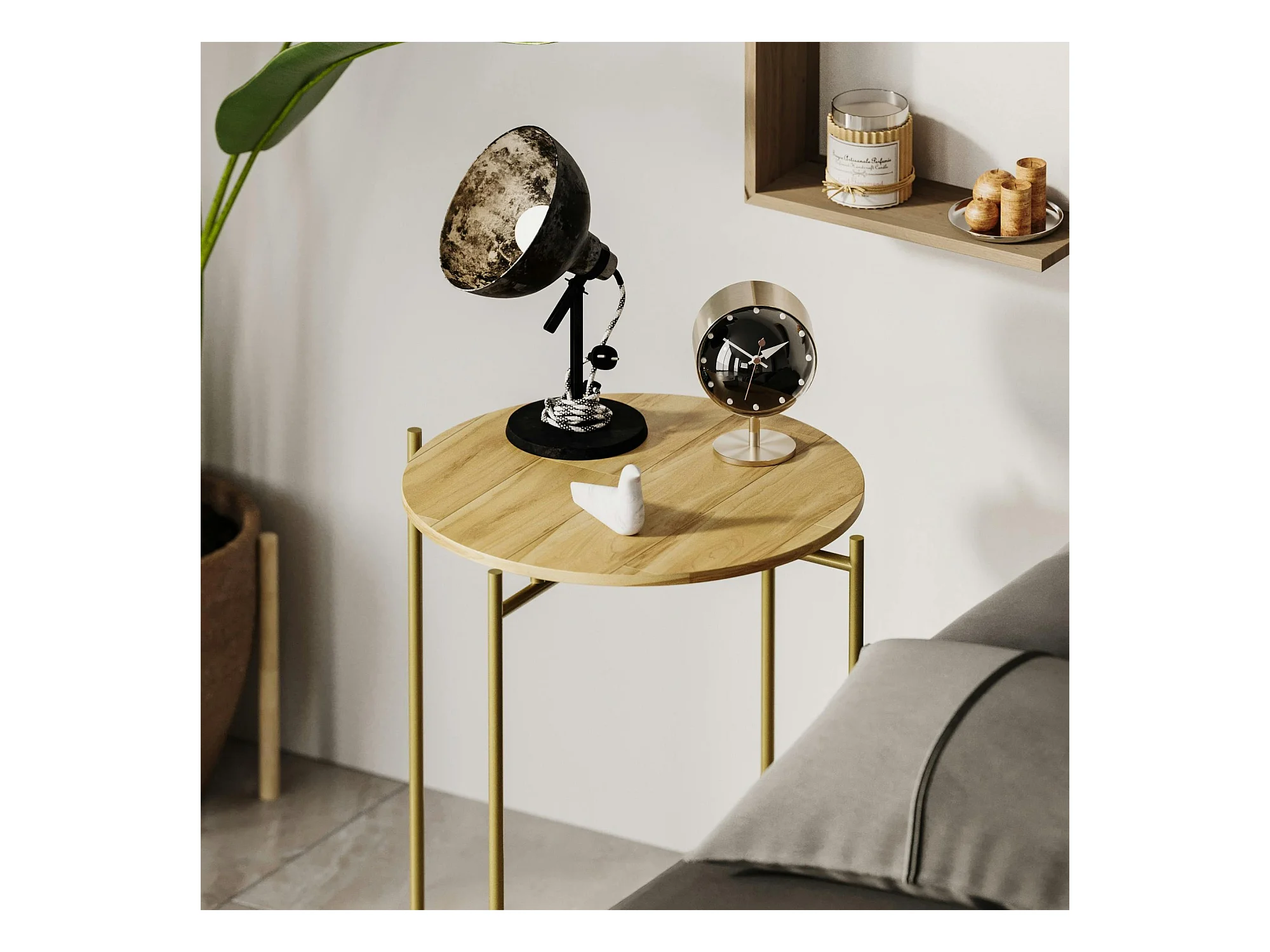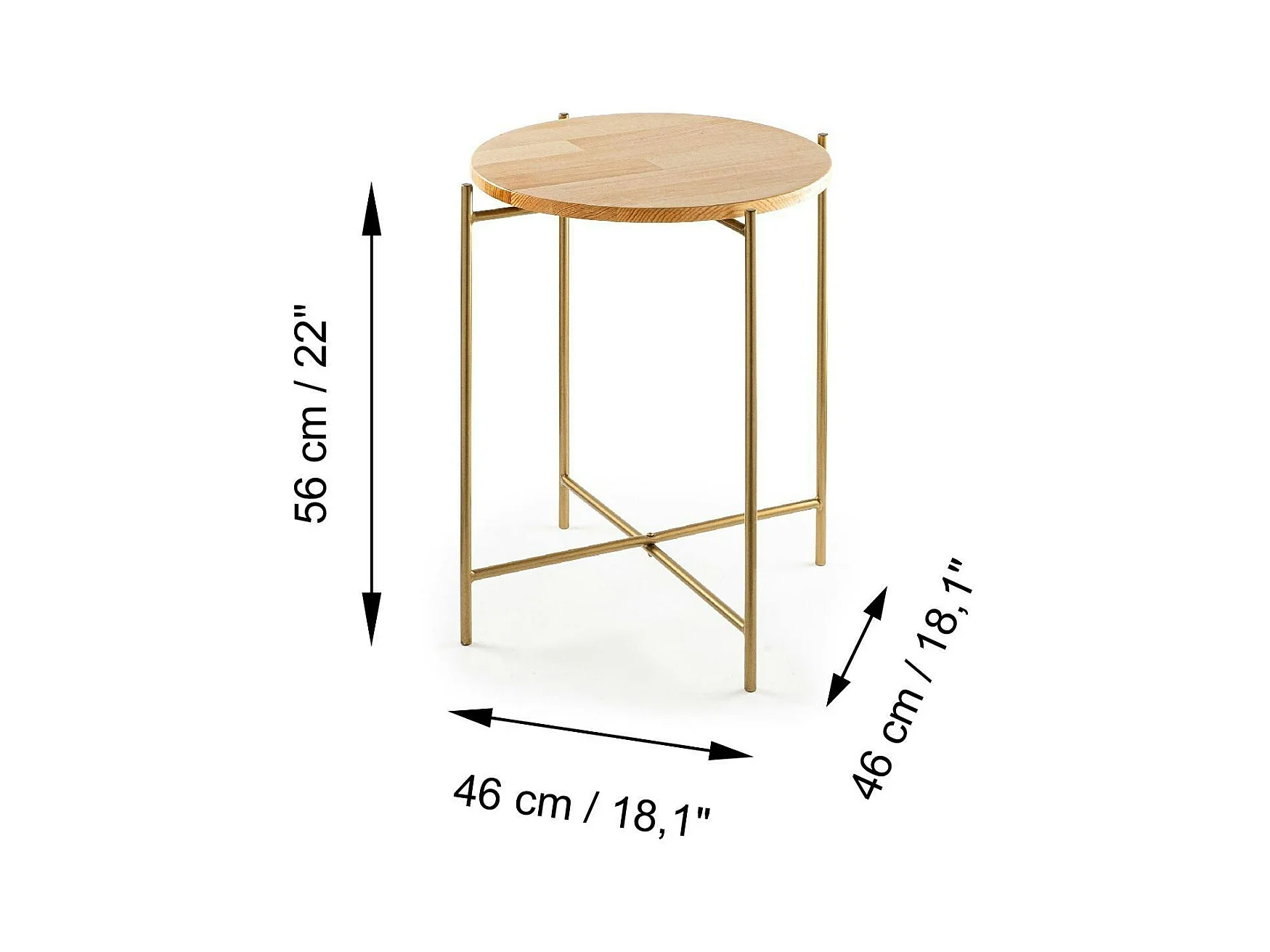 Petite table en bois ronde - structure métal doré JENA