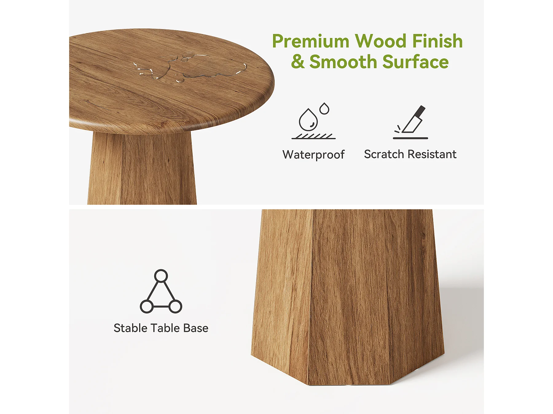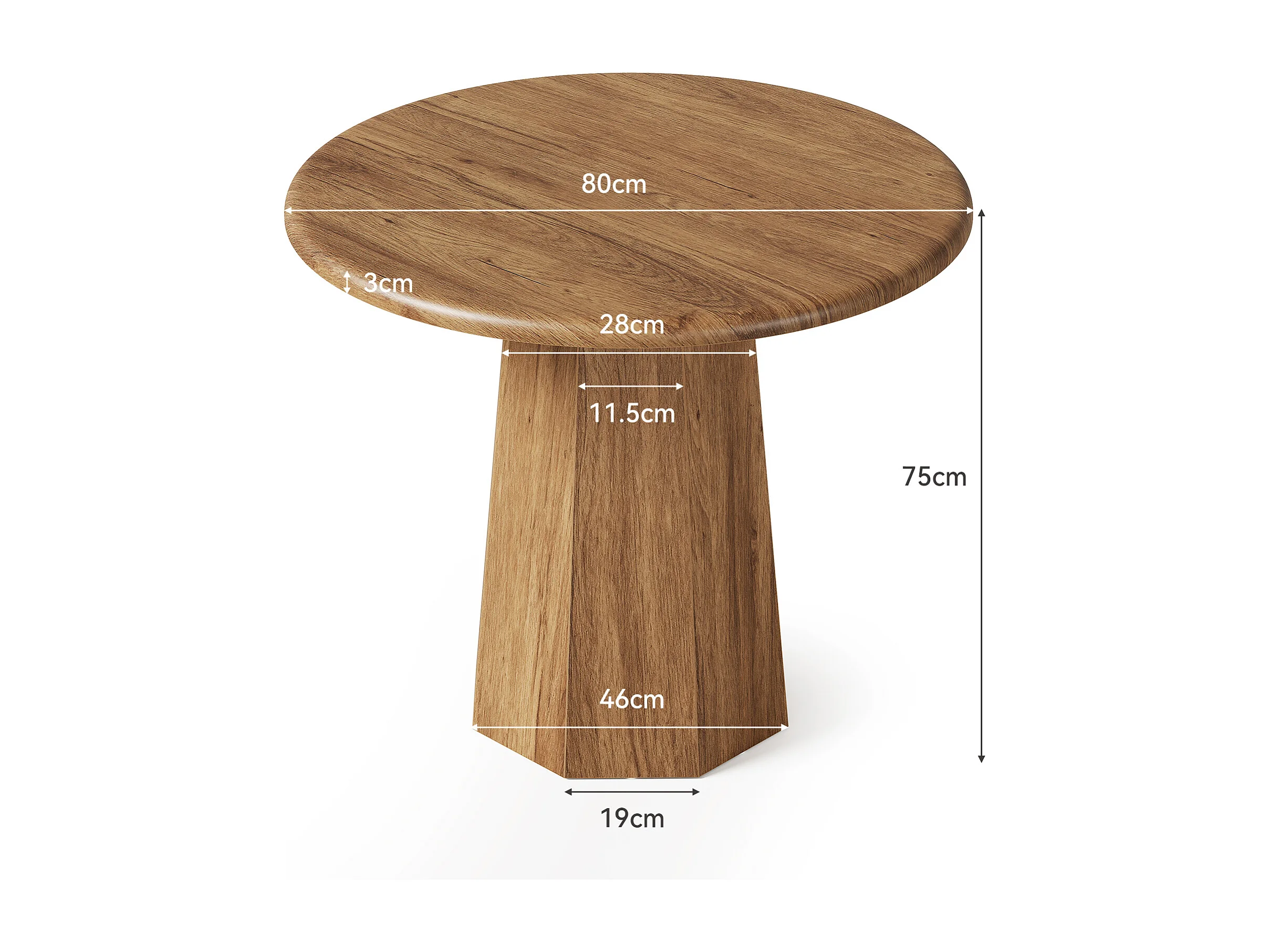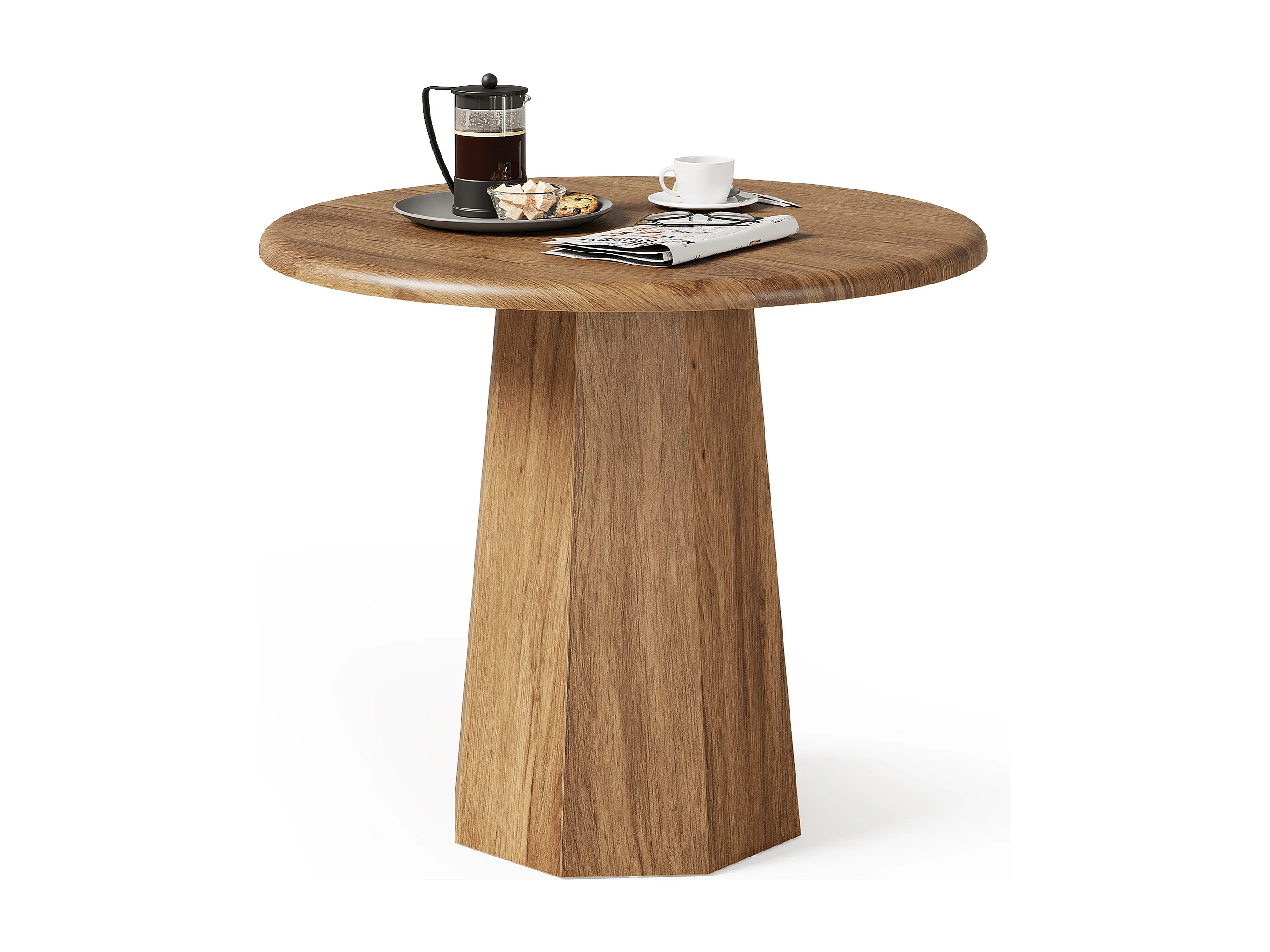 Petite table ronde pour 2 à 4 personnes, table de cuisine de 80 cm avec piètement octogonal pour salle à manger