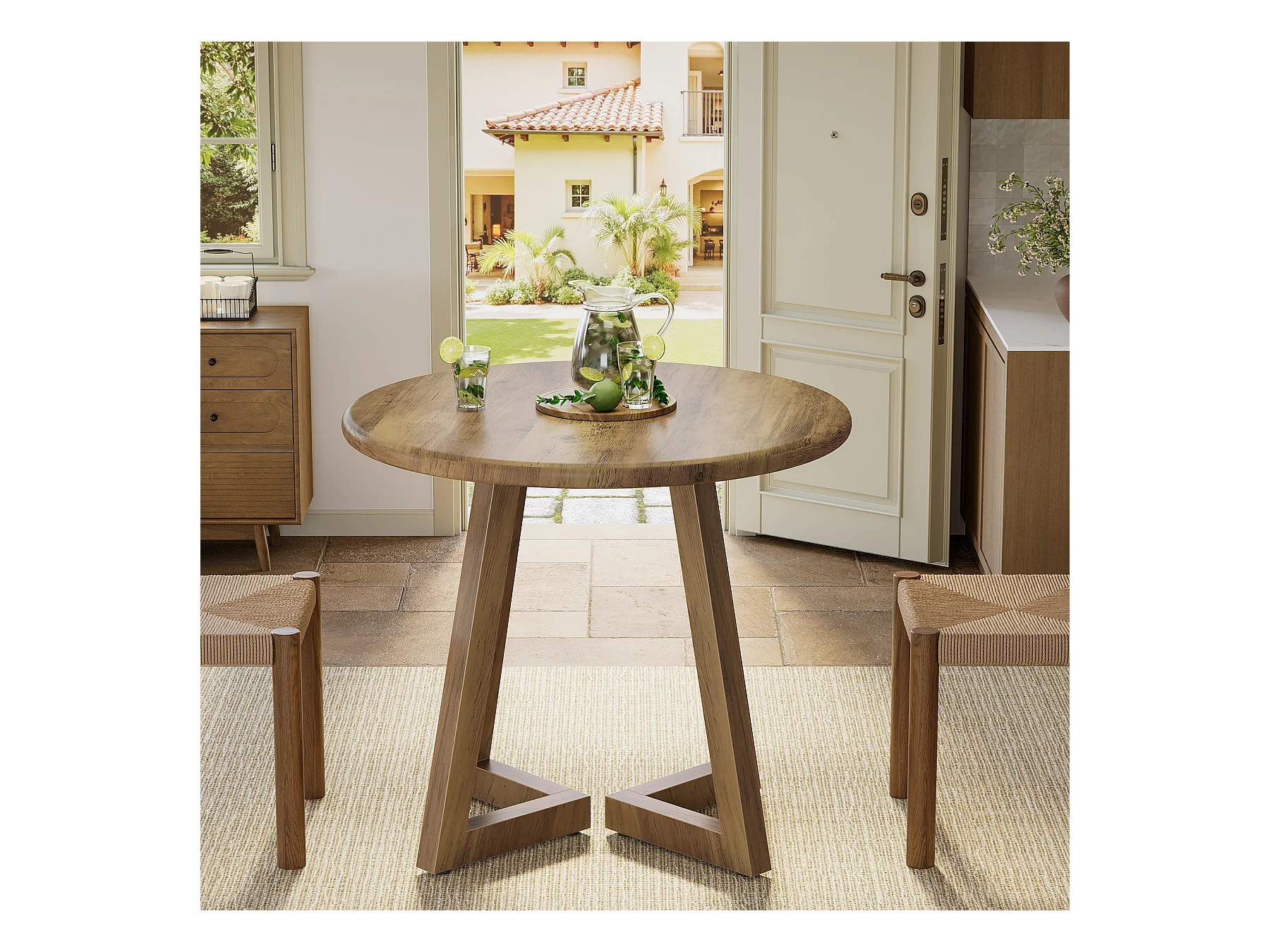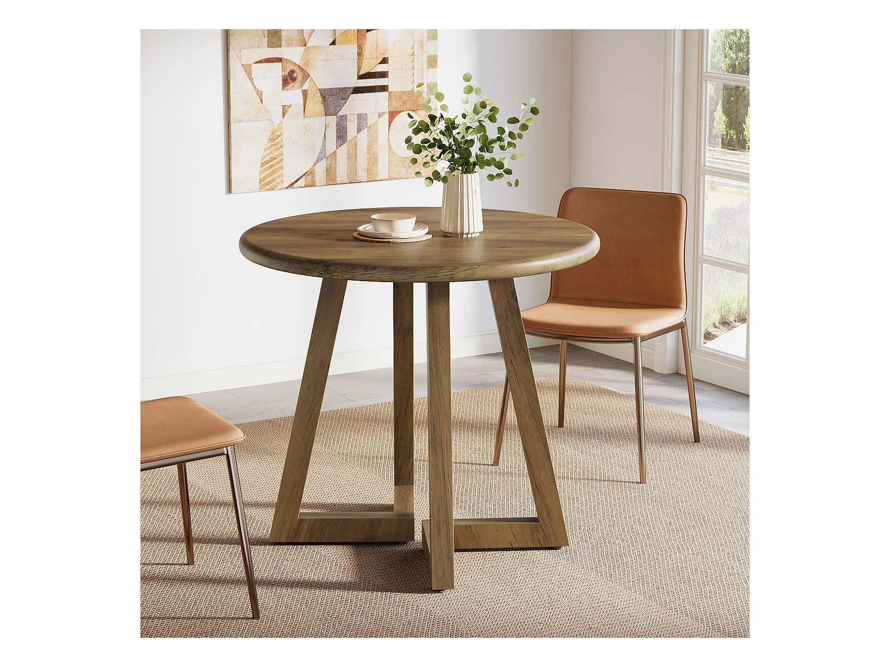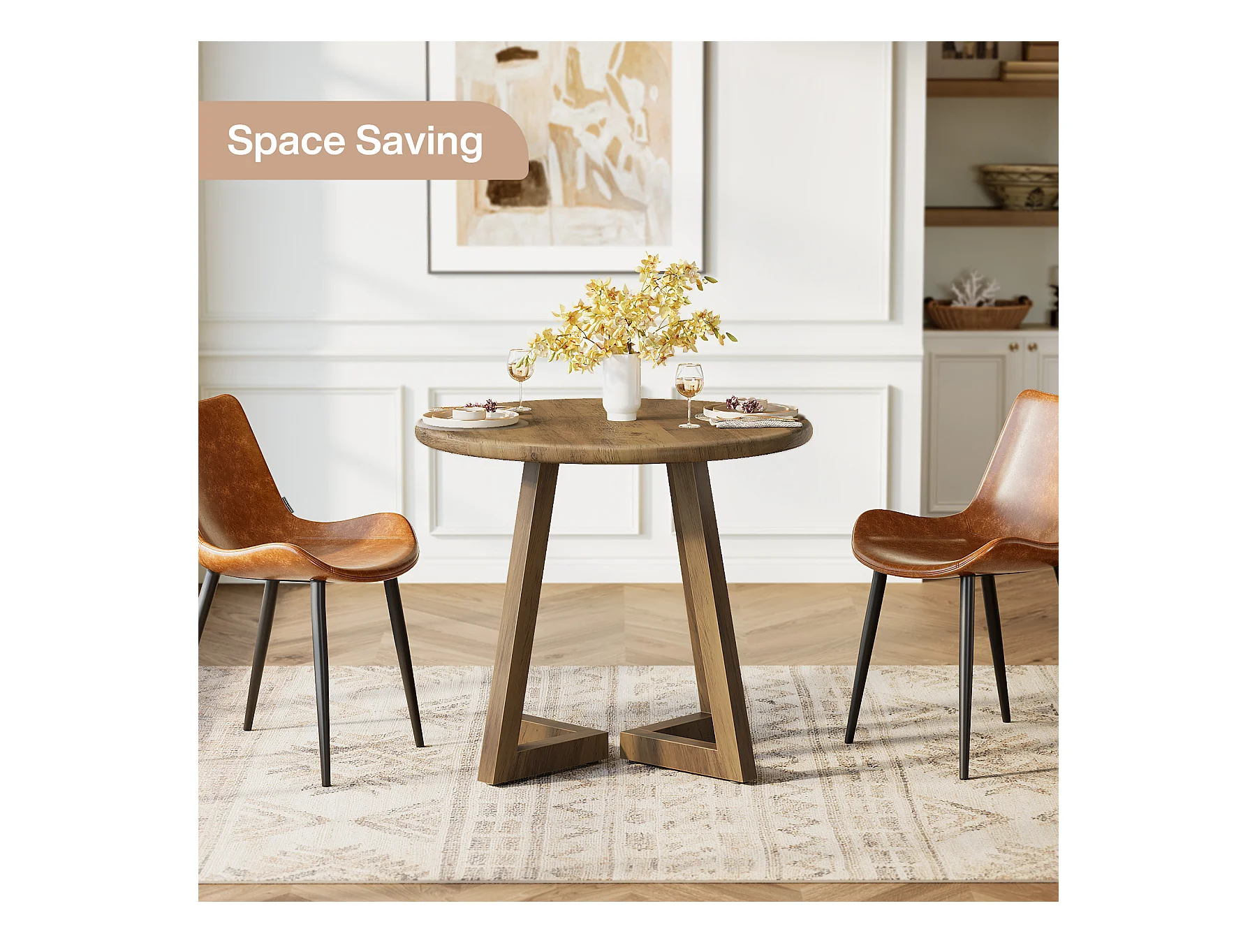 Petite table ronde pour 2 à 4 personnes, table de cuisine de 80 cm pour salle à manger et salon, marron (table seule)