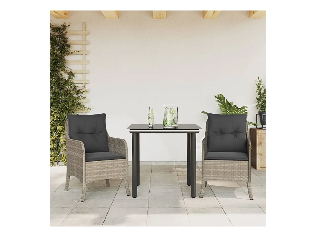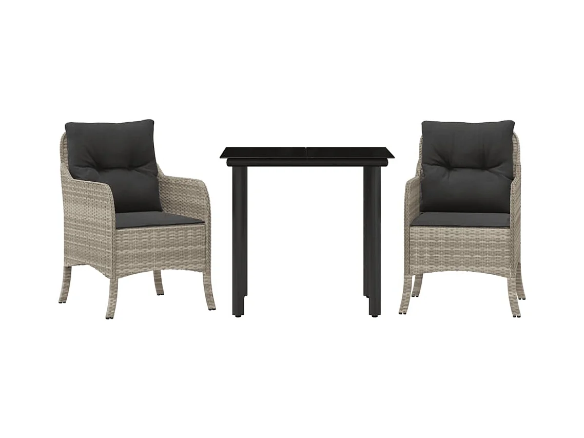 Phelindra Ensemble à manger de jardin 3pcs coussins gris clair poly rotin