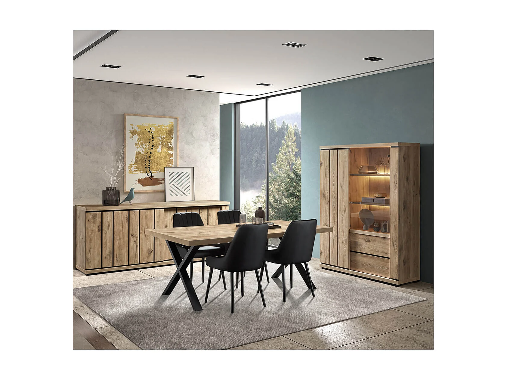 PHILEAS - Argentier avec Eclairage Led Effet Claustra Finition Canyon
