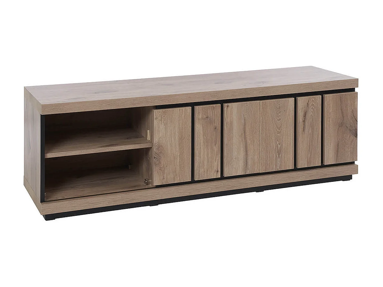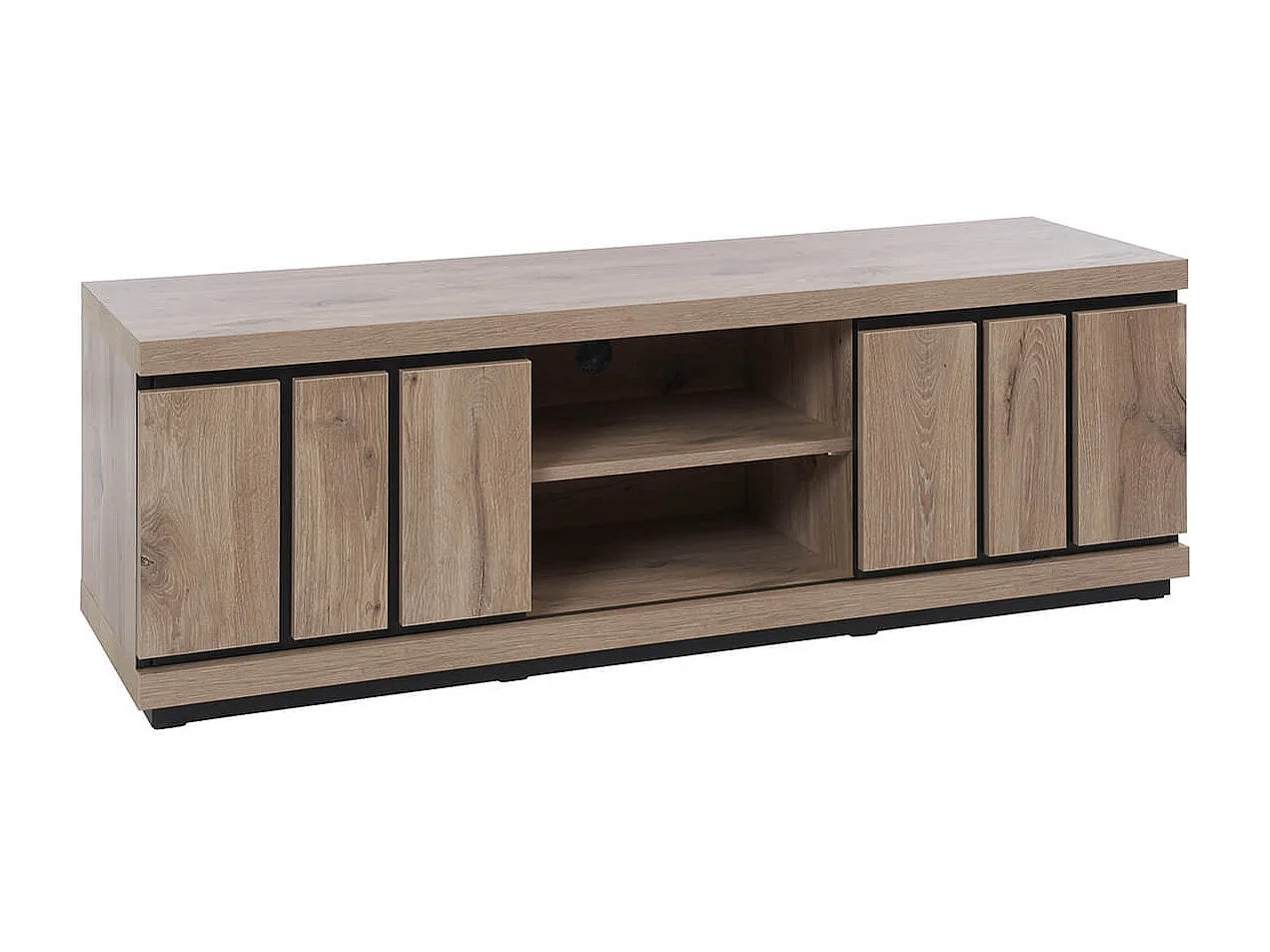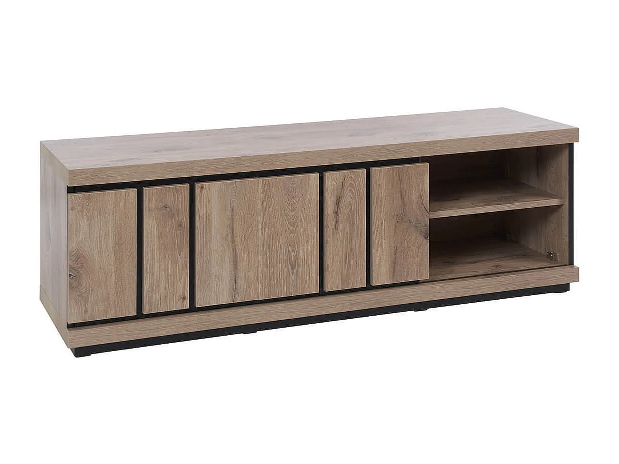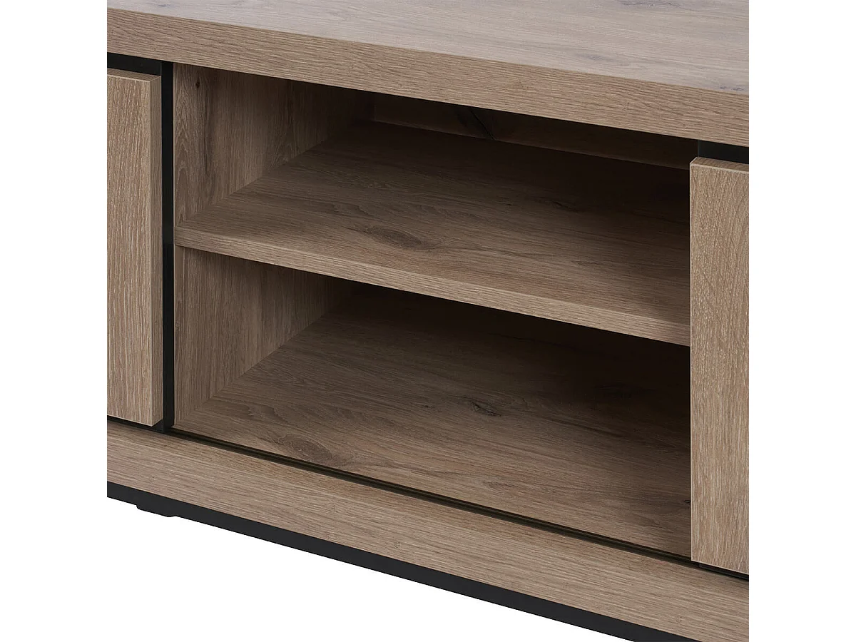 PHILEAS - Meuble TV 2 Portes Coulissantes Effet Claustra Finition Canyon