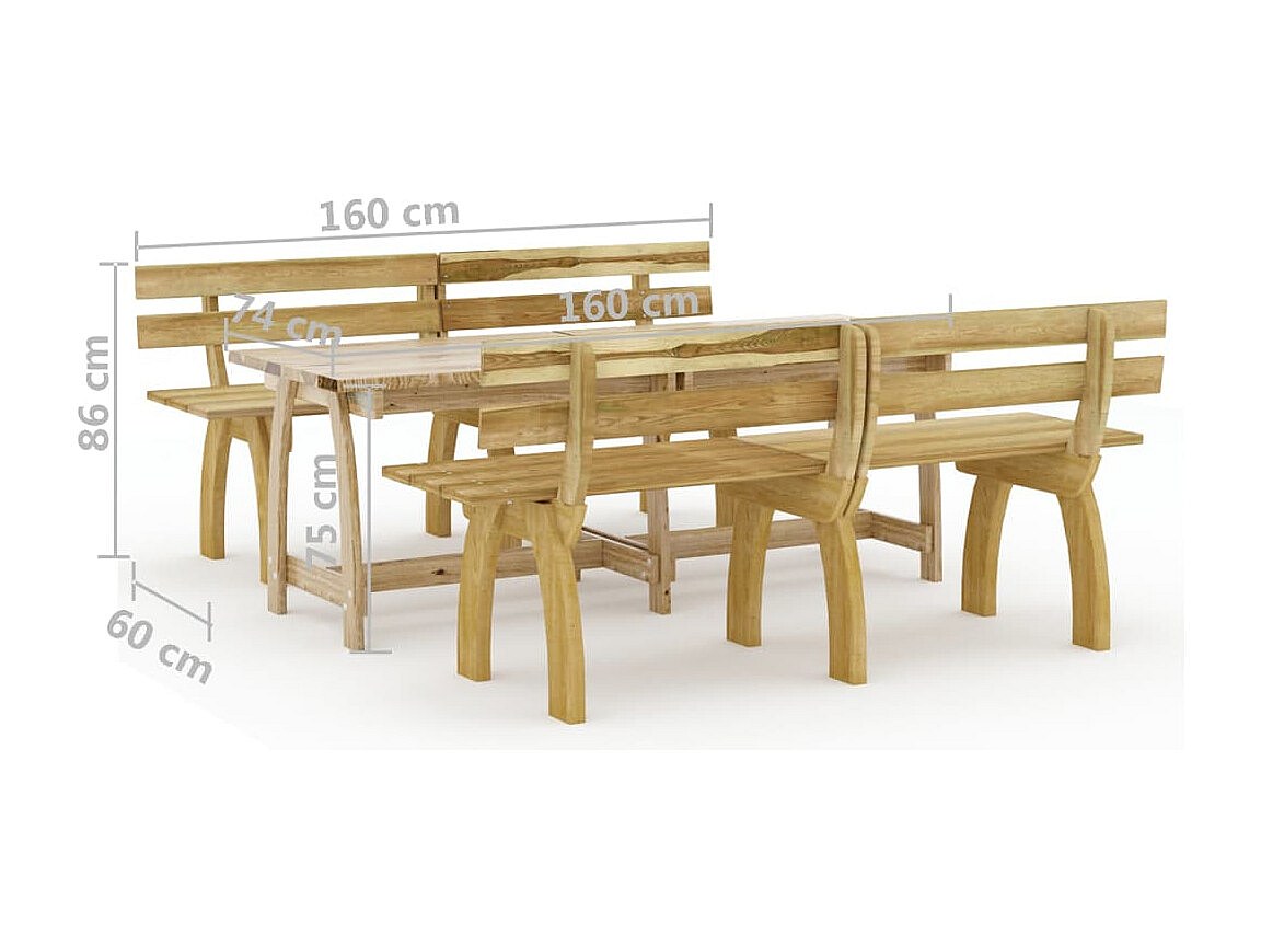 Philippe-Joseph Ensemble à manger de jardin 3 pcs Bois de pin imprégné
